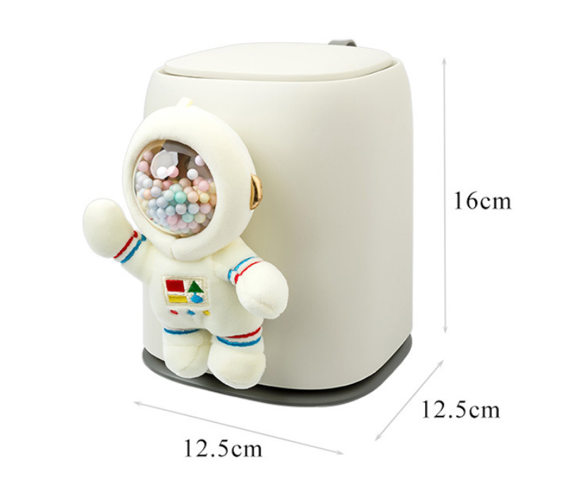 Color: astronaut - press the garbage can with spring cap - white, space rabbit - press the garbage can with spring cap - white, straw hat duck - press the garbage can with spring cap - white, long neck duck - press the garbage can with spring cap - white, smiling face clouds - press the garbage can with spring cap - white, straw hat duck - press the garbage can with spring cap - blue