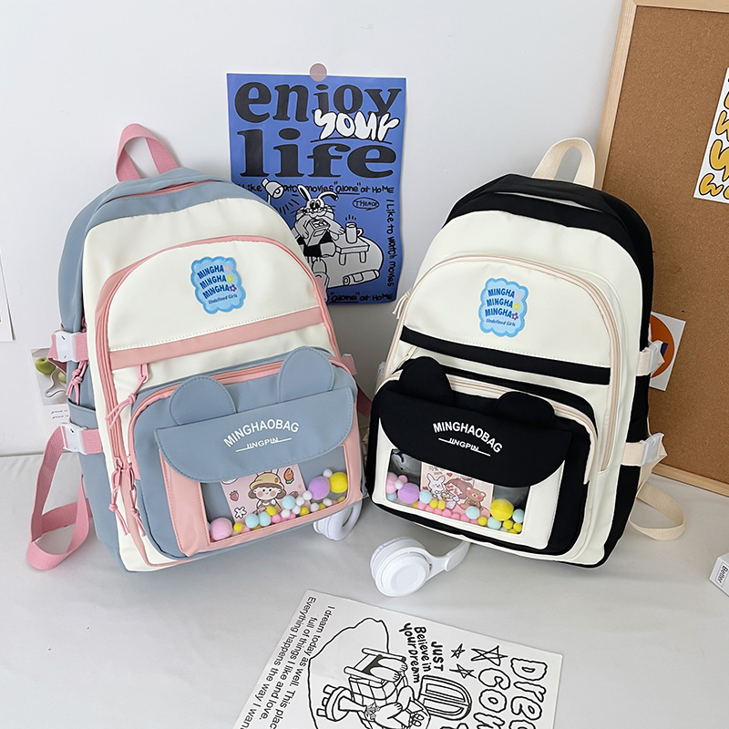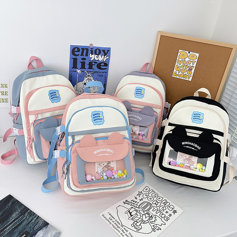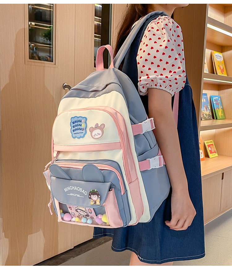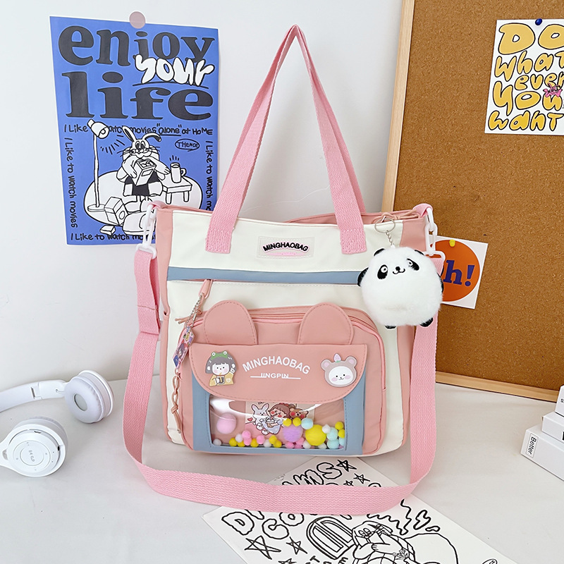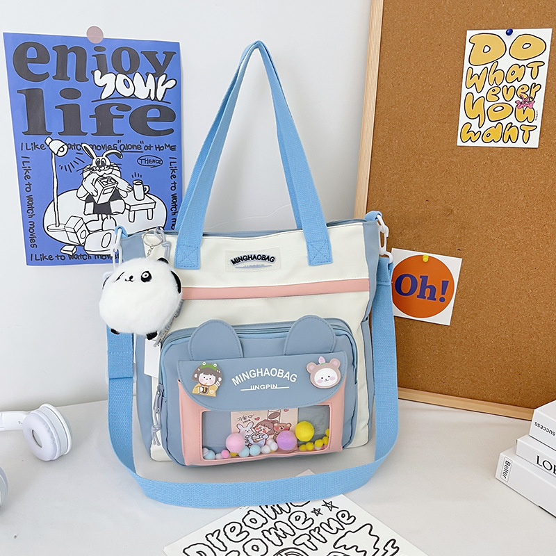 Color: blue-shoulder bag, pink-shoulder bag, black-shoulder bag, purple-shoulder bag, blue-backpack, pink-backpack, black-backpack, purple-backpack