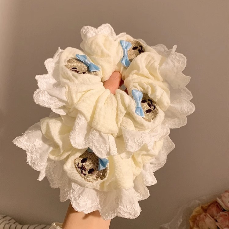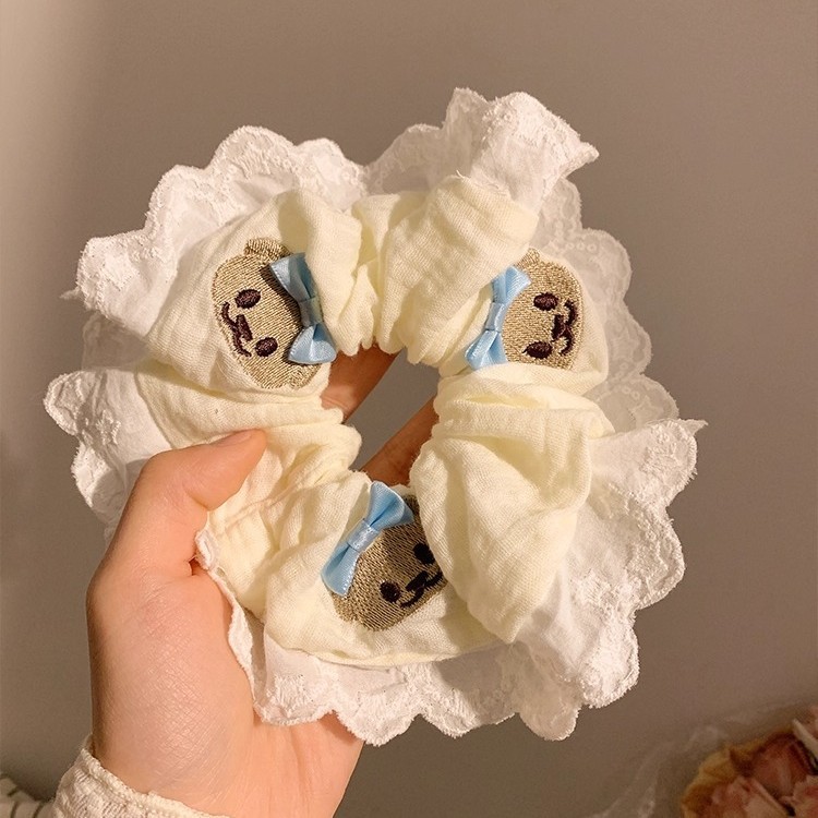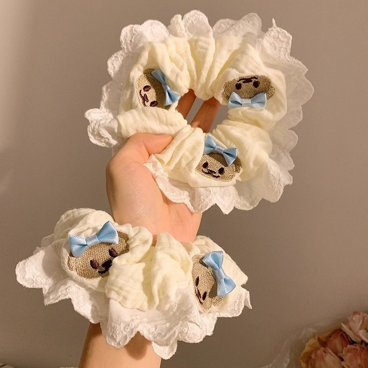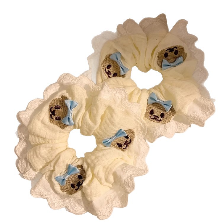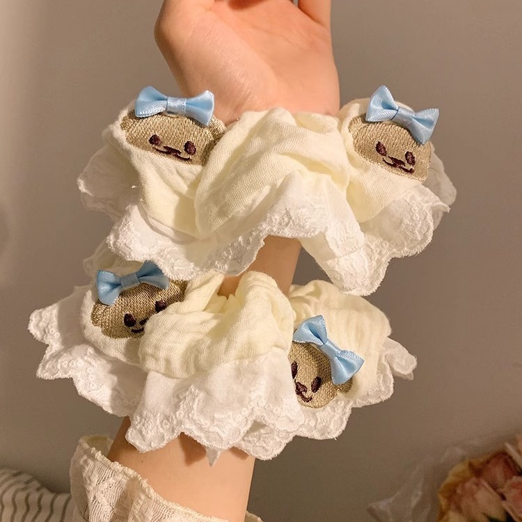 Product information:Color: Bear blue bowknot hair ring Material: cloth Popular elements: Bear Style: Cute Style: high elasticity