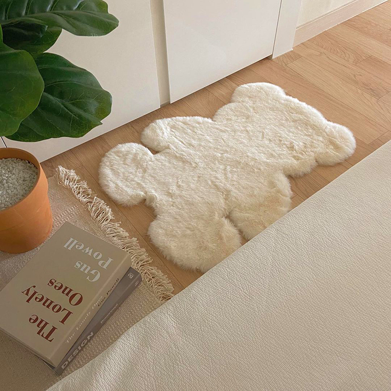Cute Bear Carpet Imitating Rabbit Fur Soft Floor Mats Bedside Mats Warm Cushions
