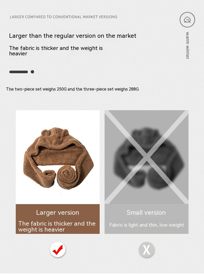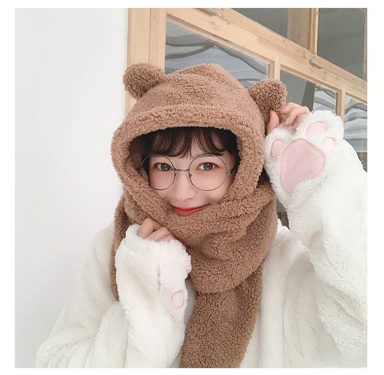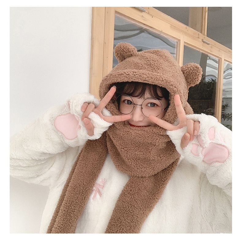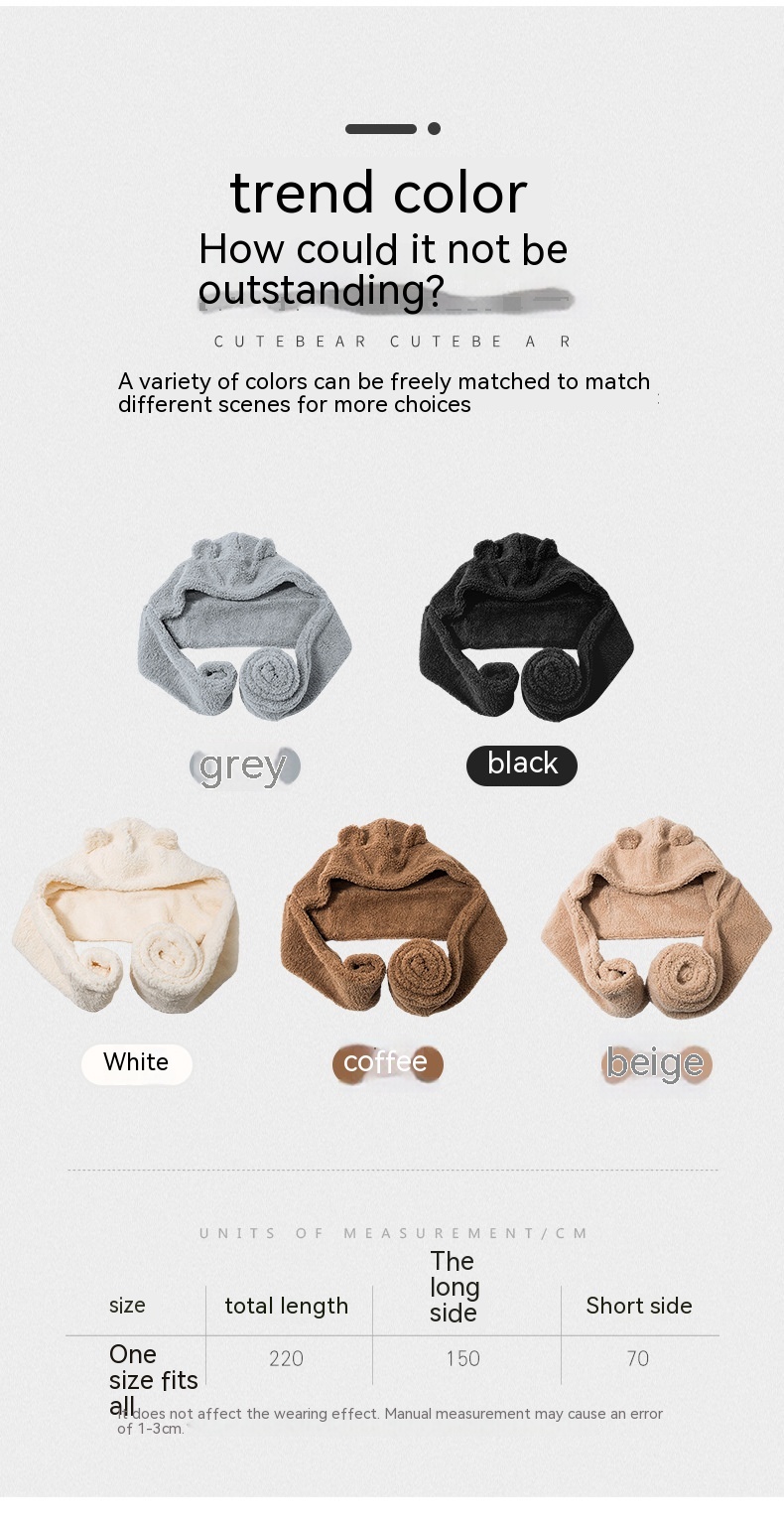 Color: two-piece coffee, two-piece beige, two-piece white, two-piece black, three-piece white, three-piece coffee, three-piece beige, four-piece white, four-piece coffee, four-piece beige, 3411 ear style-white, 3411 ear style-beige, 3411 ear style-khaki, 3411 earless-khaki, 3411 mask-White, 3411 mask-beige, 3411 mask-khaki, 2-piece set of fur ears-White, 2-piece set of fur ears-khaki, 2-piece set of fur ears-beige, 3-piece set of fur ears-including masks (white), 3-piece set with fur ears-including masks (khaki), 3-piece set with fur ears-including masks (beige)