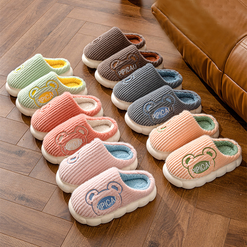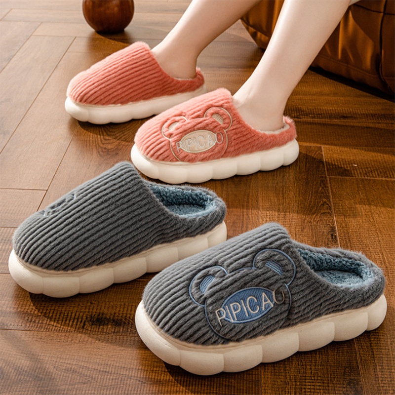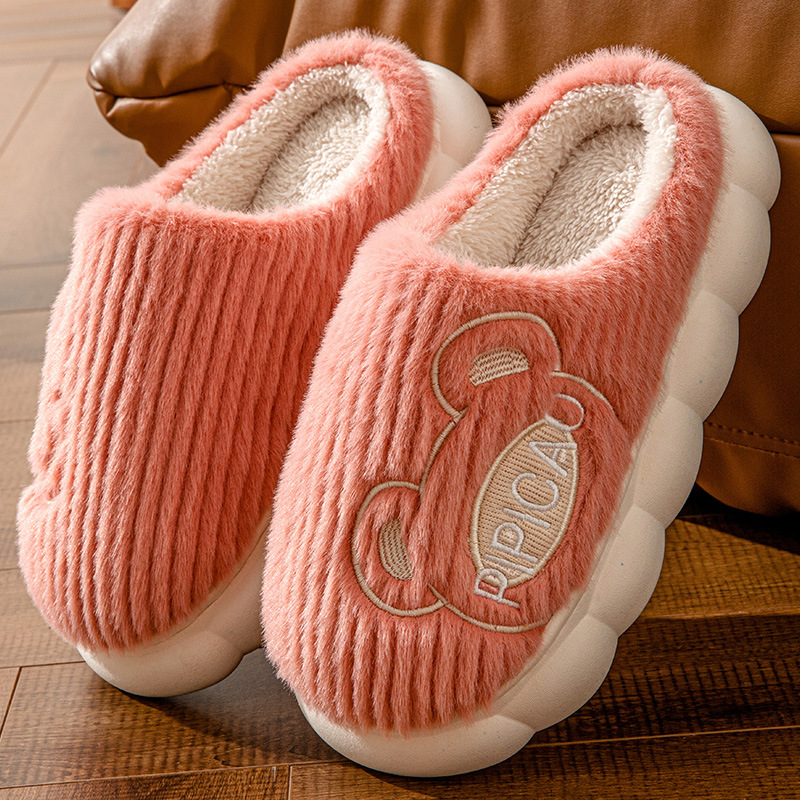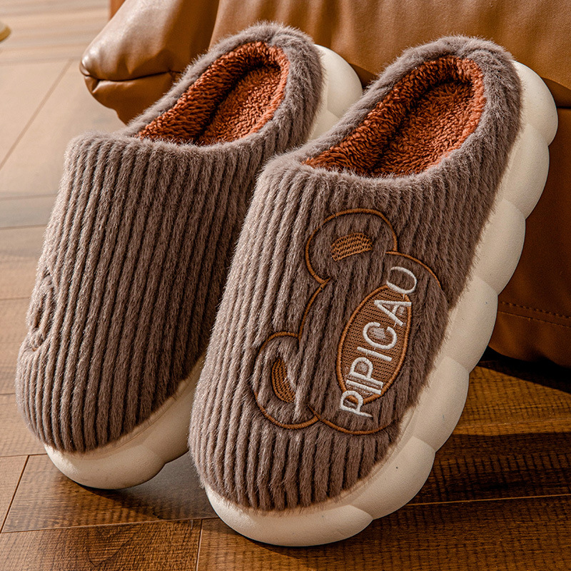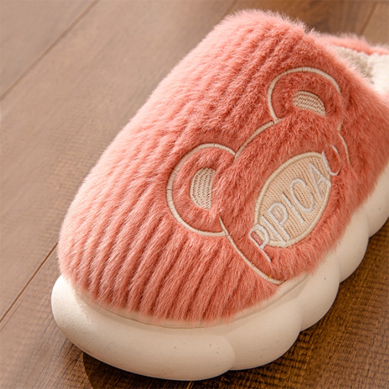 Cute Bear Home Slippers Warm Thick Bottom Non-slip Couple House Shoes Winter Floor Bedroom Slippers For Women Men