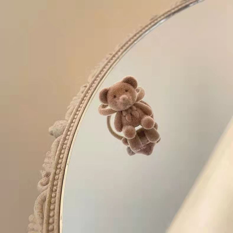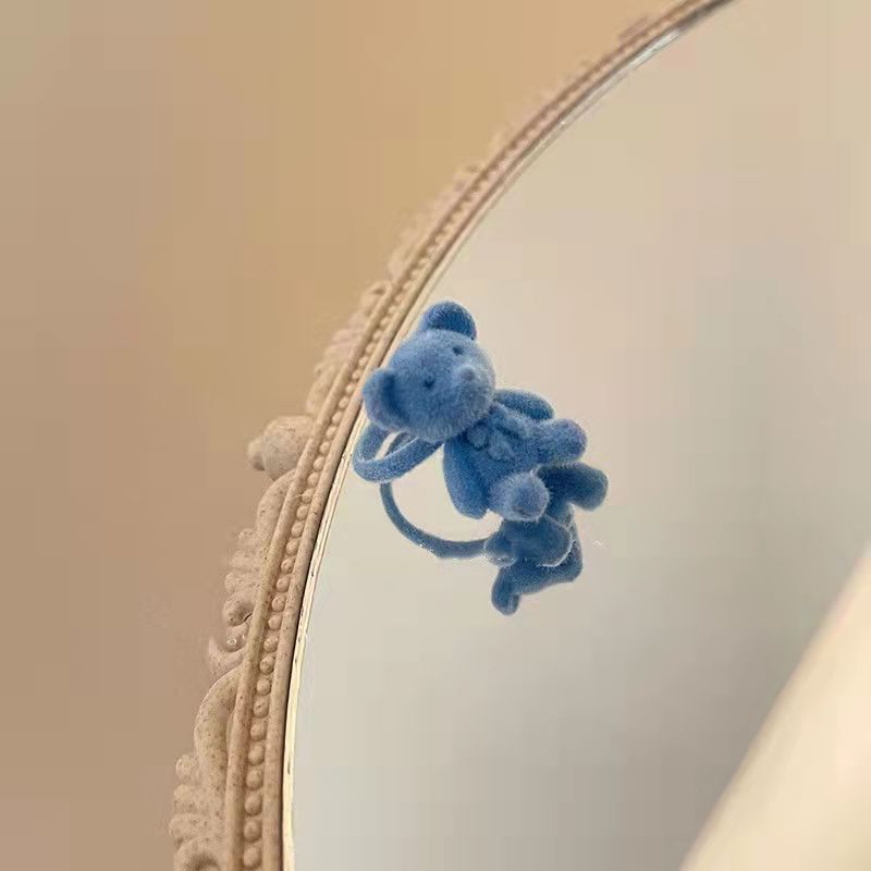 Cute Blue Flocked Bear Open Ring, Sweet INS Style All-match Adjustable Finger Ring