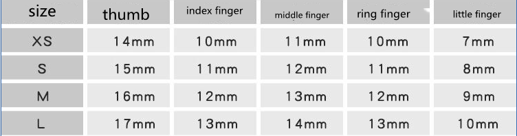 Color classification: XS (smallest), S (small), M (medium), L (large)