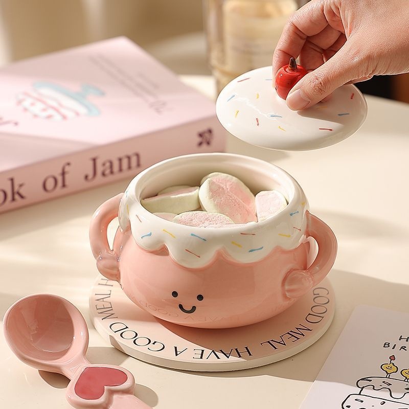 Product information:Color: pink handle gift box, blue handle gift boxMaterial: CeramicSpecification: no specificationCapacity: less than 1L