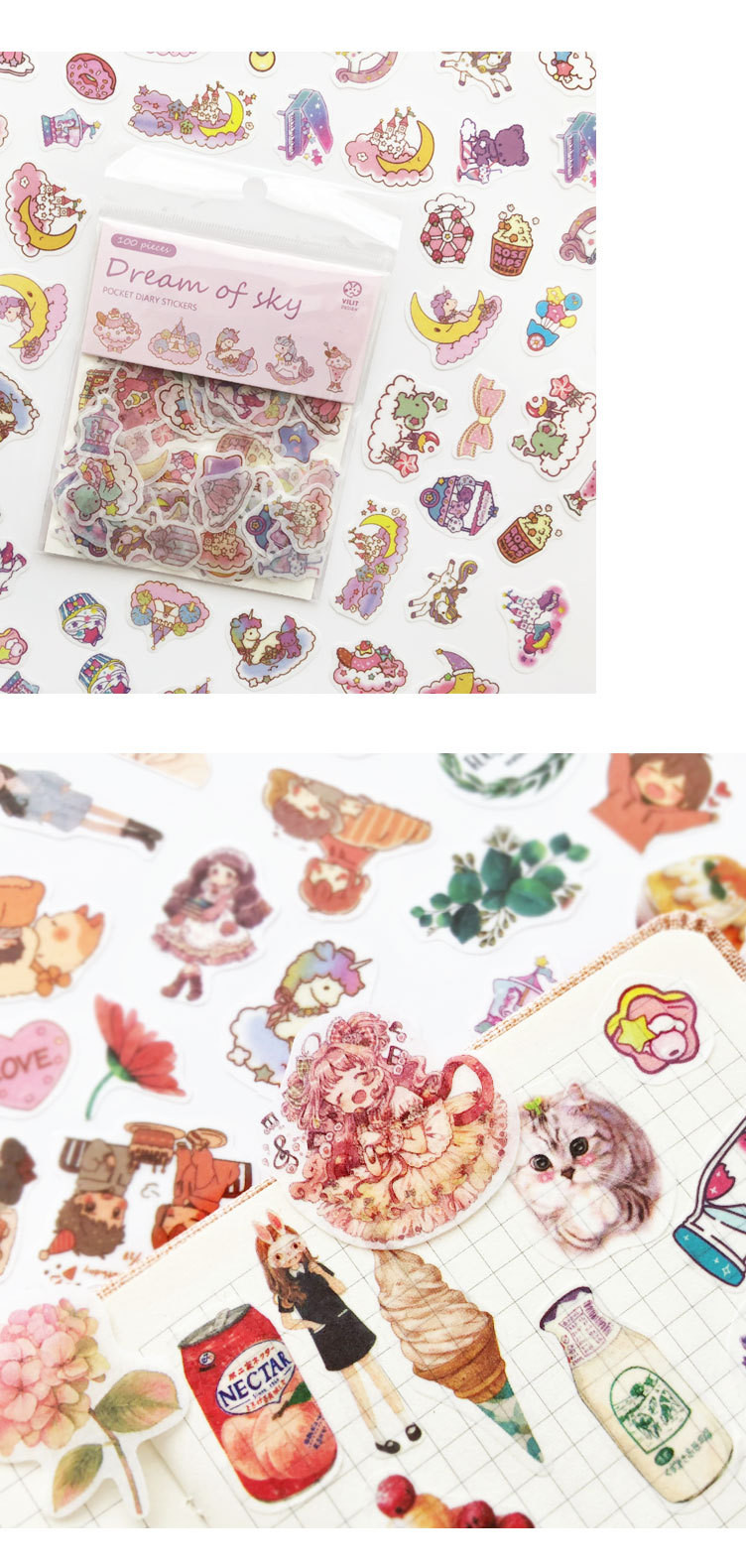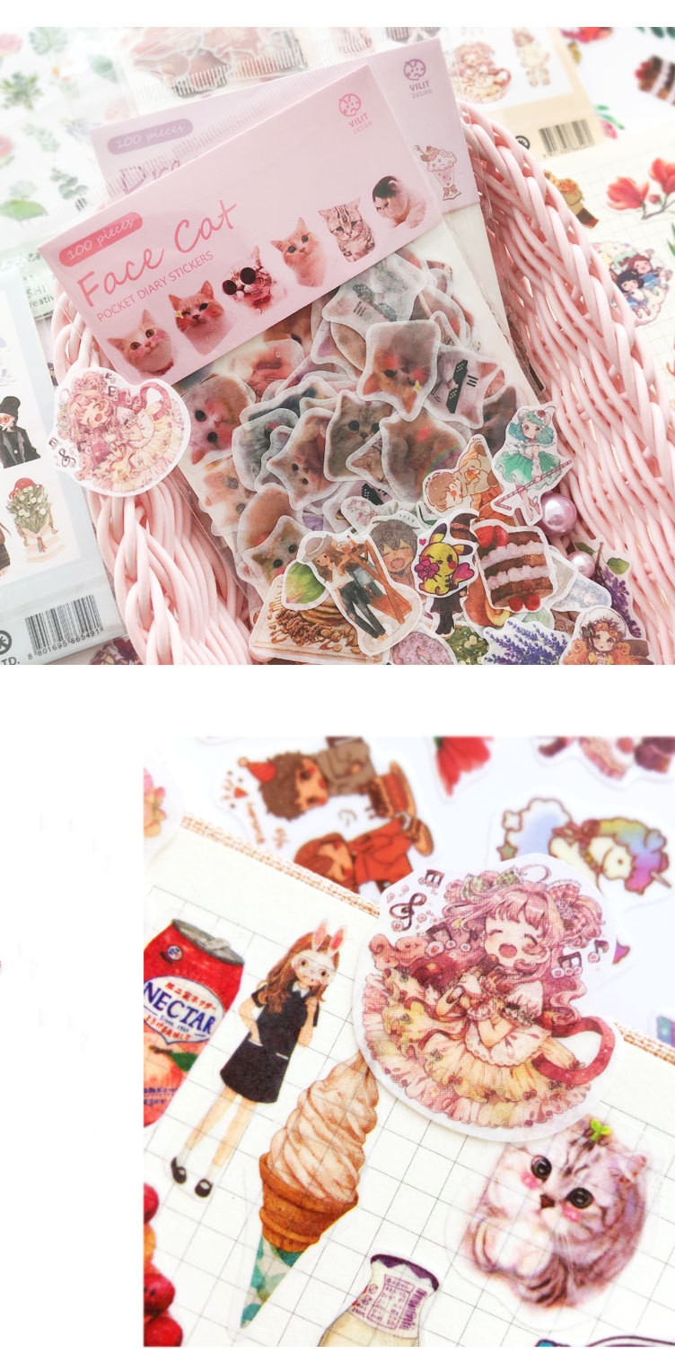 Name: One hundred pieces of vending equipment and paper sticker packMaterial: Japanese paperPacking specification: 11*9cmWeight: about 10 grams