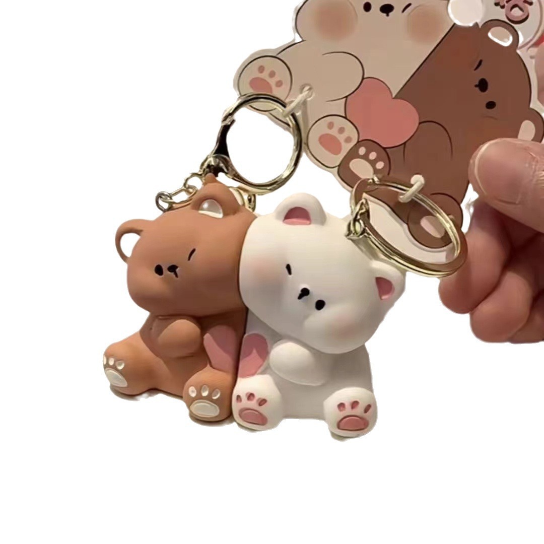 Color: Bear pendant Keychain [one-pair package], bear pendant Keychain [single white bear] right, bear pendant Keychain [single yellow bear] left