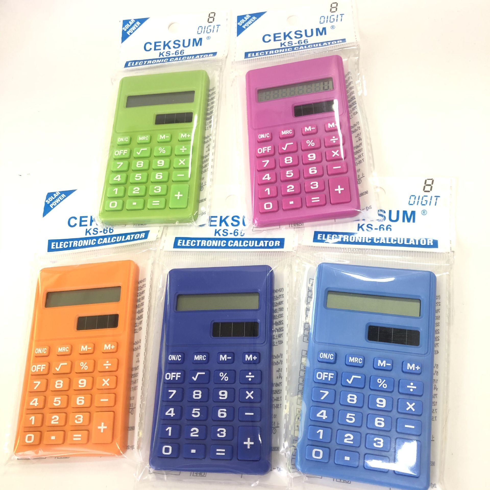 Color: orange, dark blue, green, pink, light blue