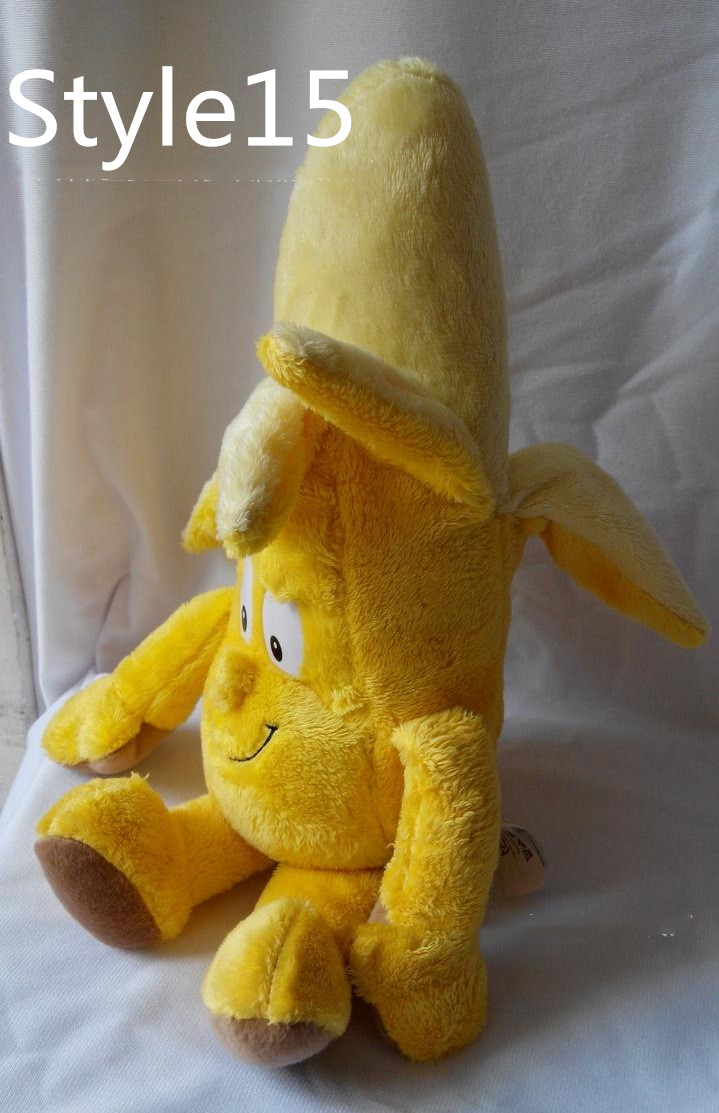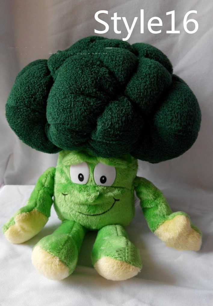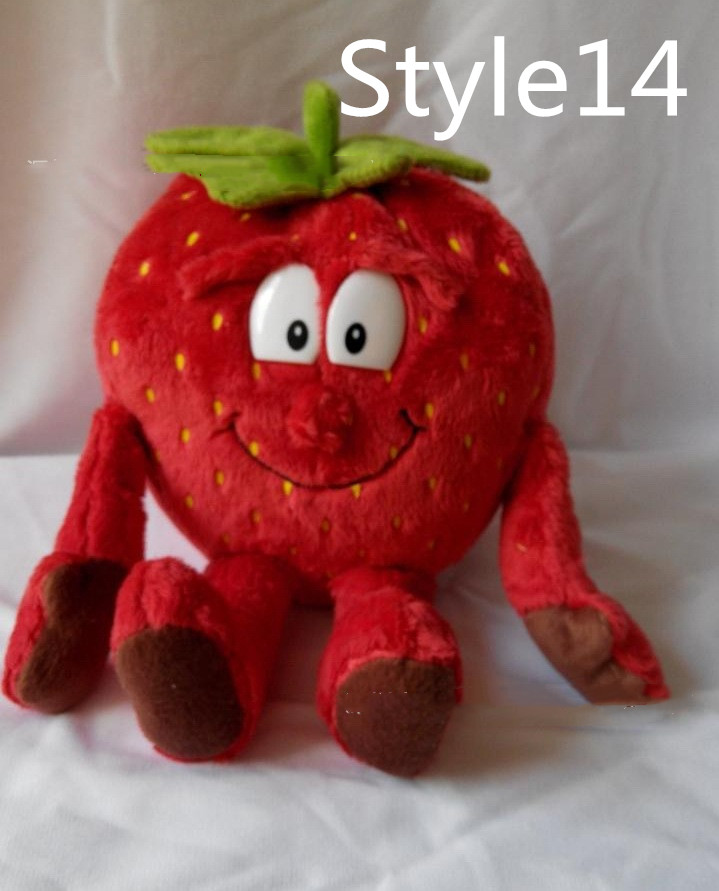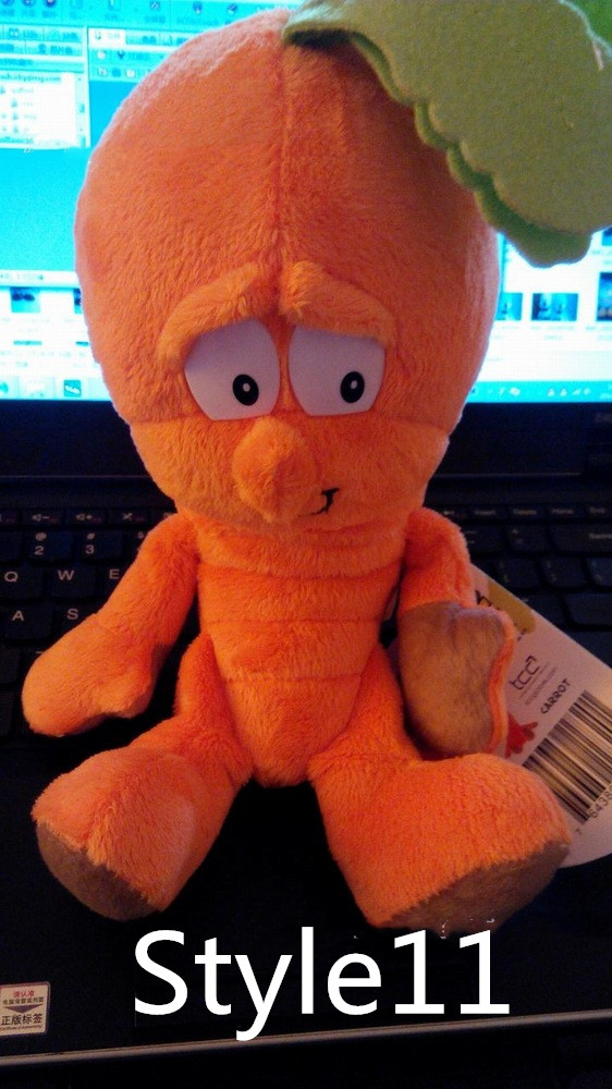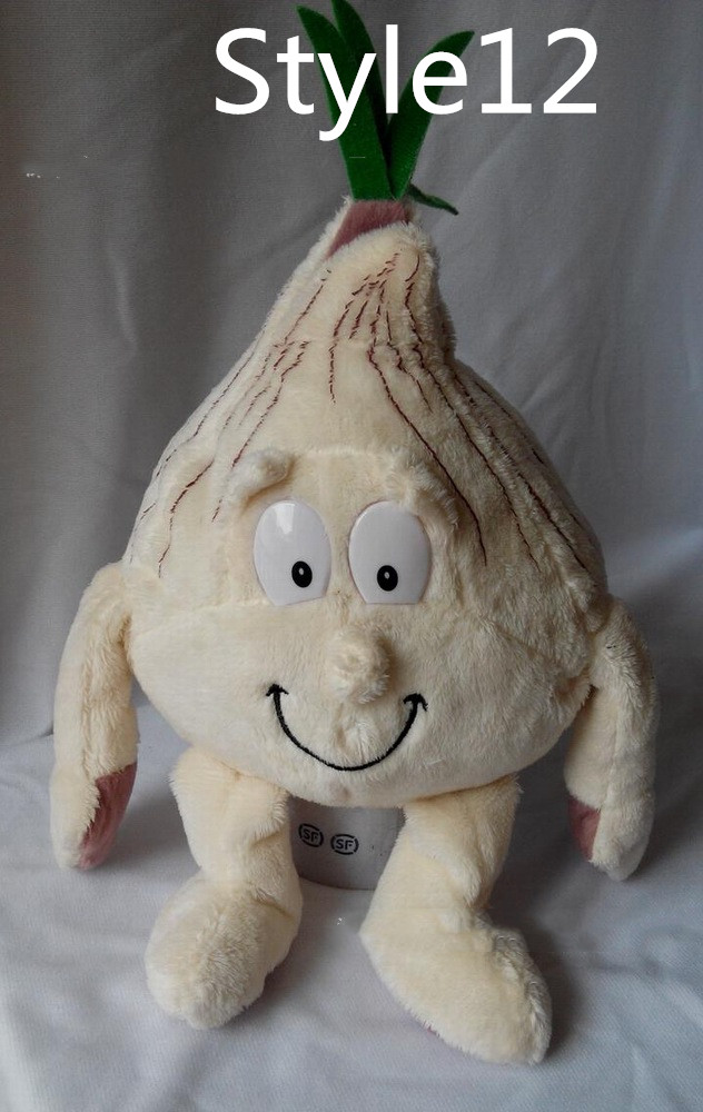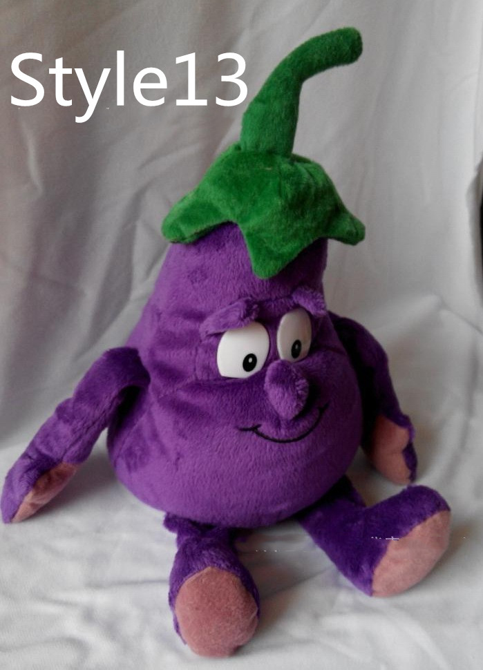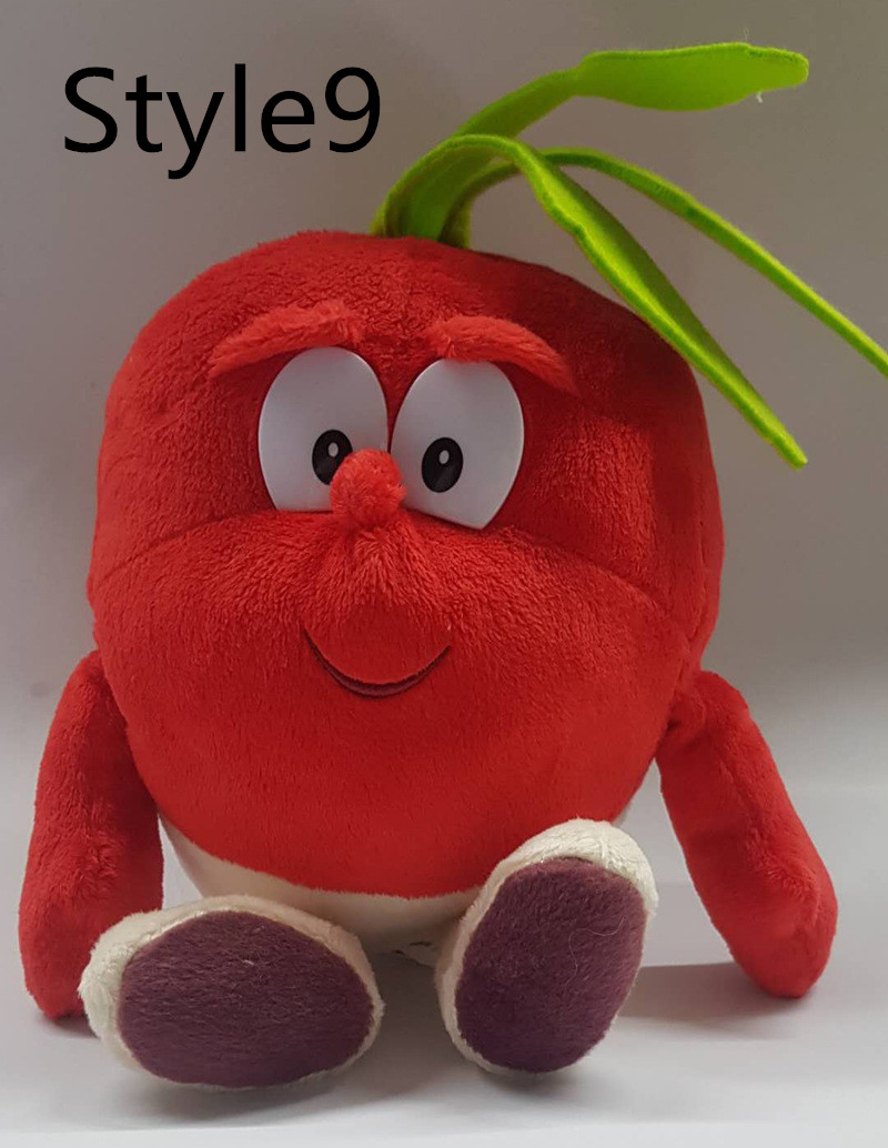 Size: Eggplant is about 26cm high, onion is about 22cm high, radish is about 25cm high, banana is about 30cm high, cauliflower is about 30cm high, Shirley is about 18cm high, and strawberry is 22cm high.