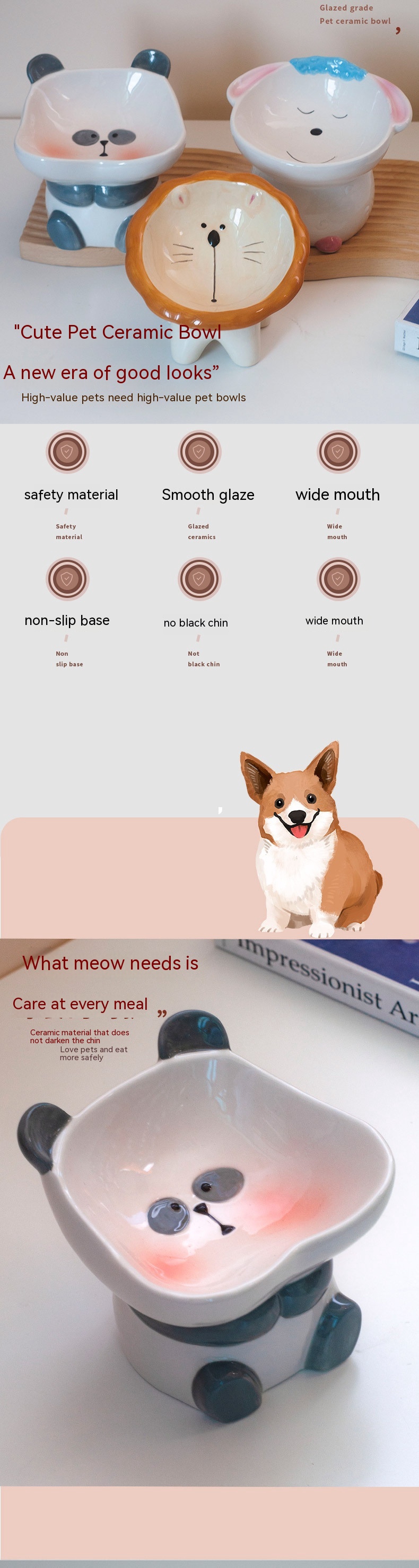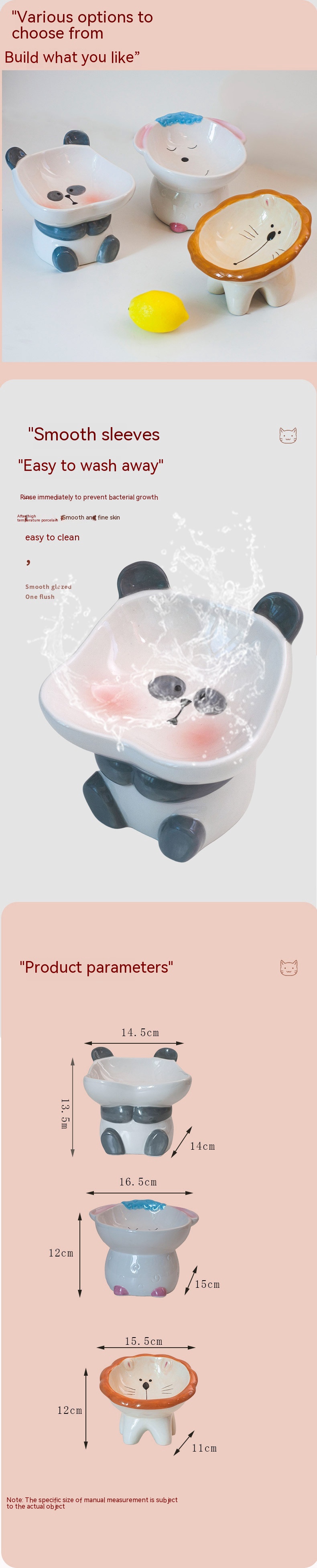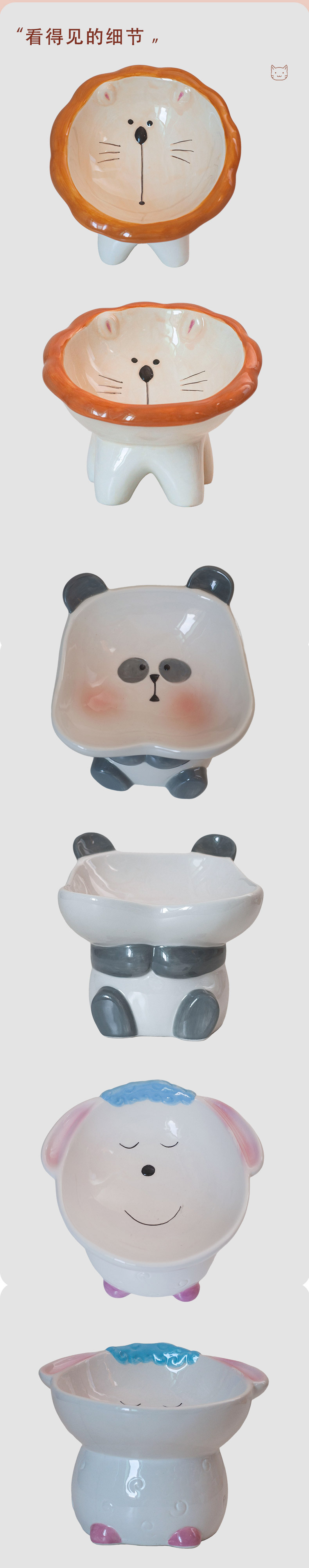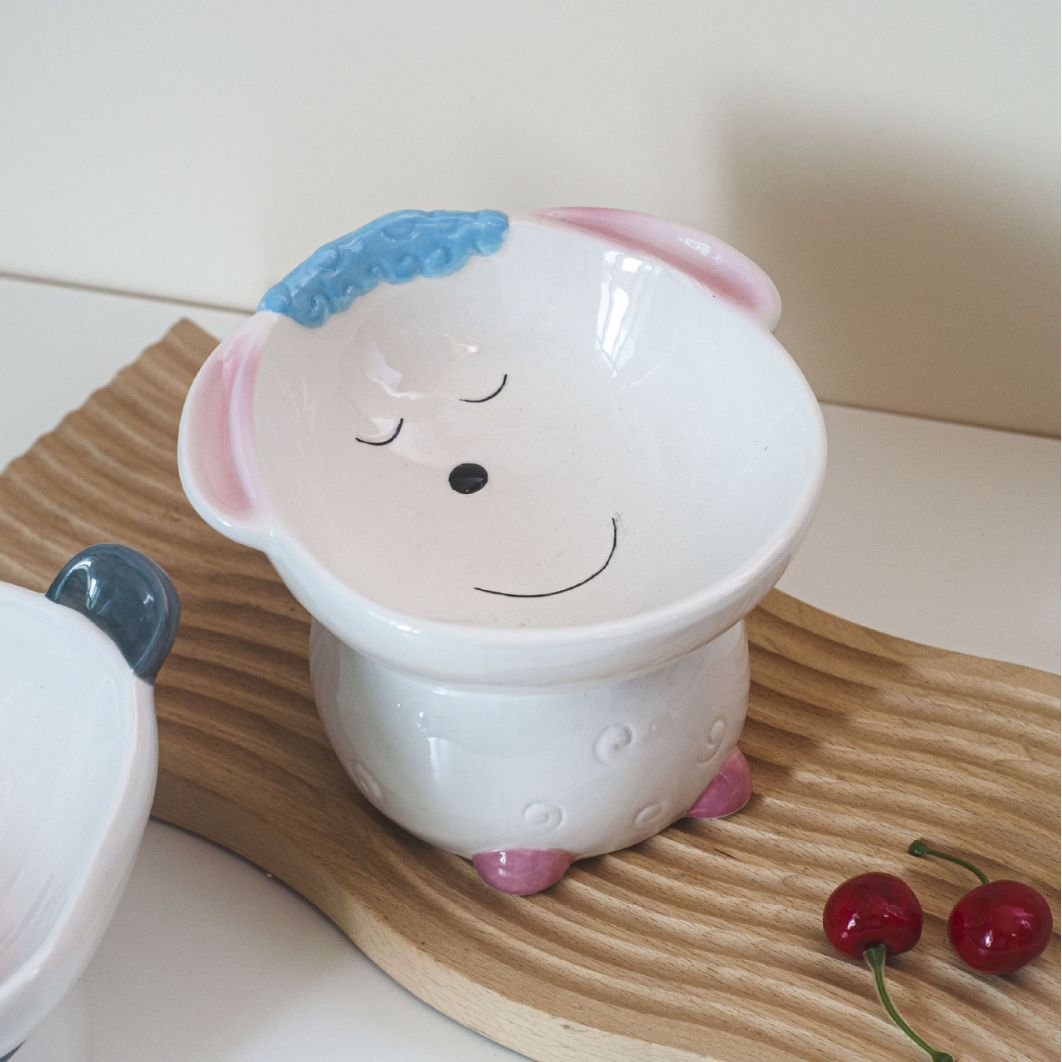 Specifications: Brown lion tall bowl, cute sheep tall bowl, cute panda tall bowl, blue cheese donut food bowl, yellow cheese donut, large blue donut with bowknot