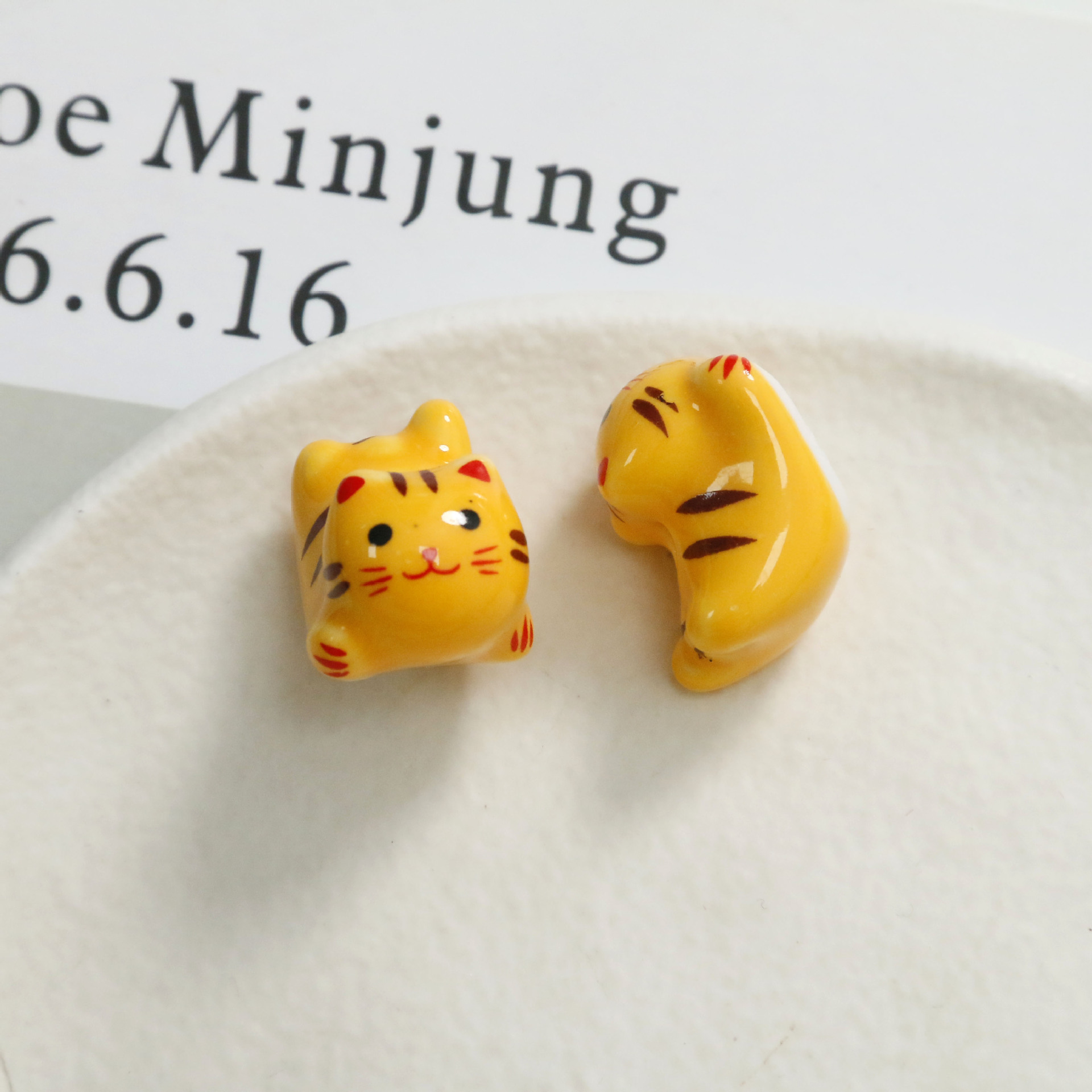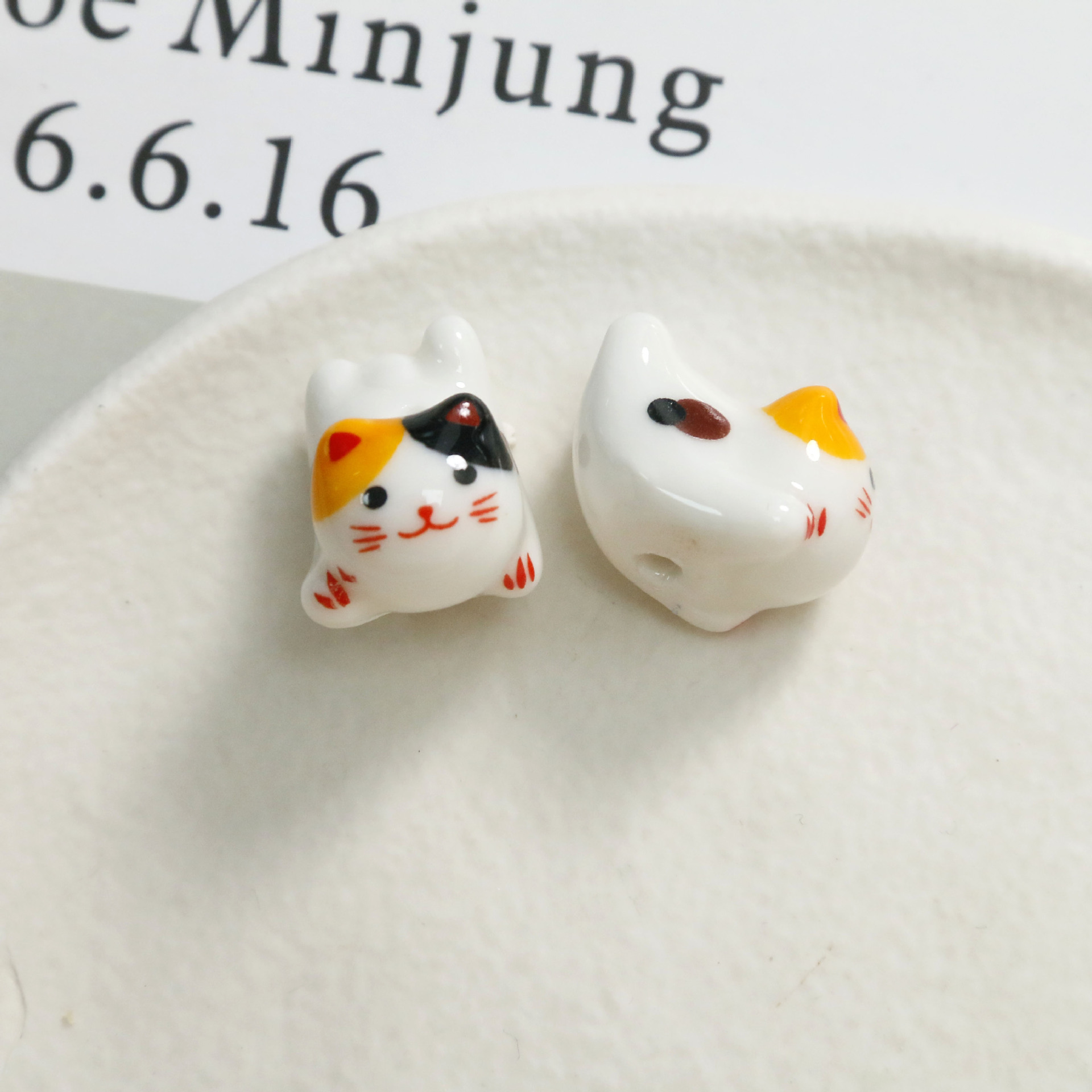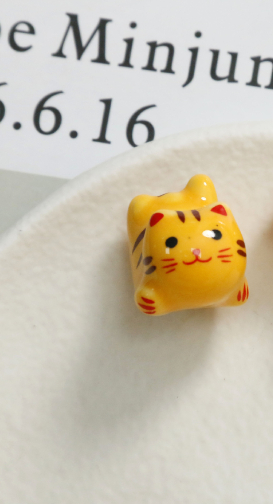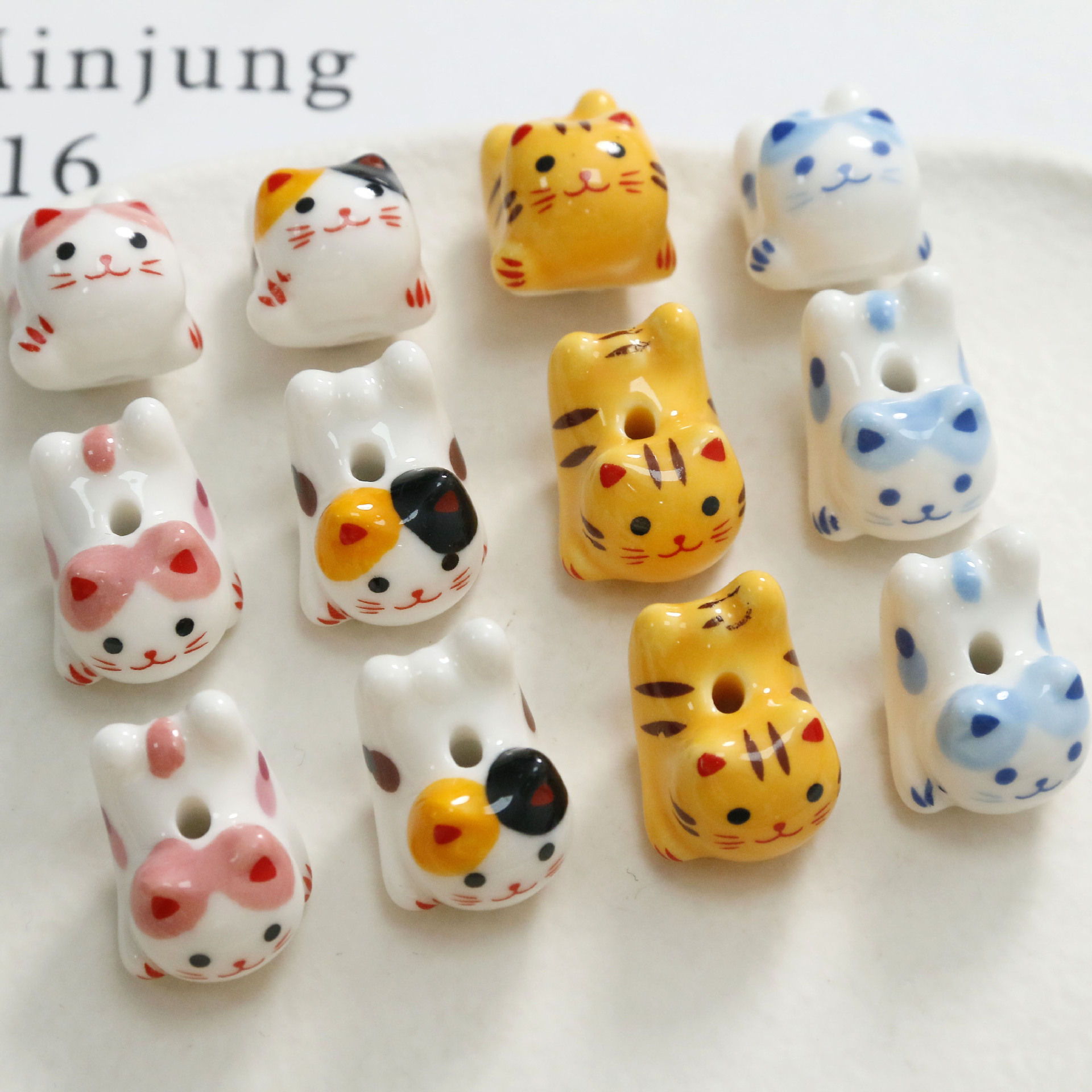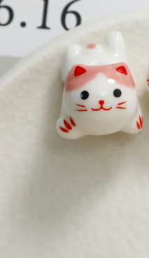 Cute Cartoon Porcelain Three-dimensional Sprint Cat Straight Hole Beaded