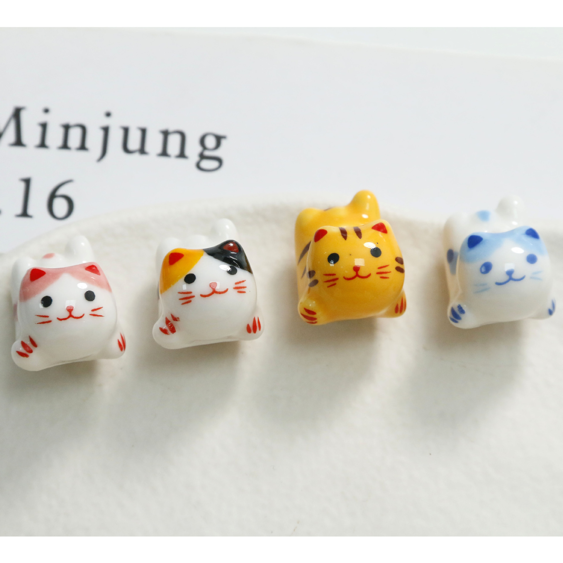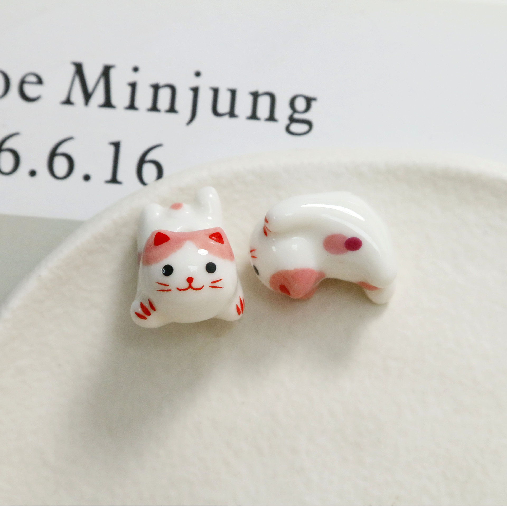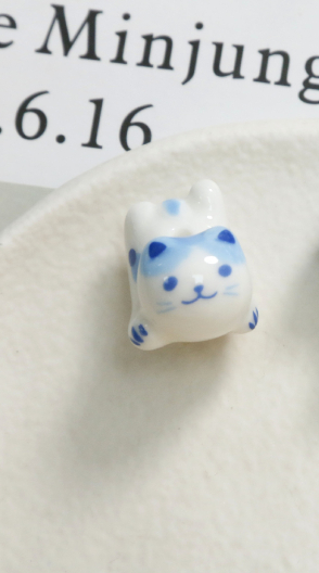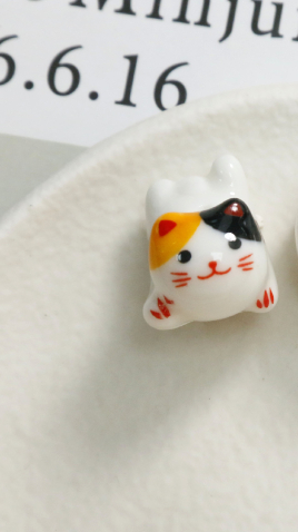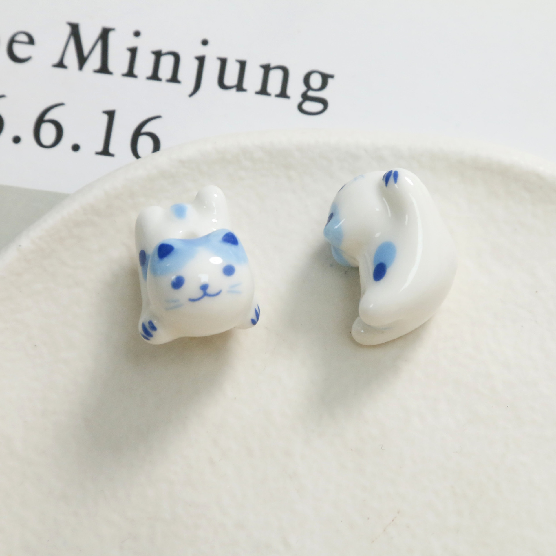 Cute Cartoon Porcelain Three-dimensional Sprint Cat Straight Hole Beaded