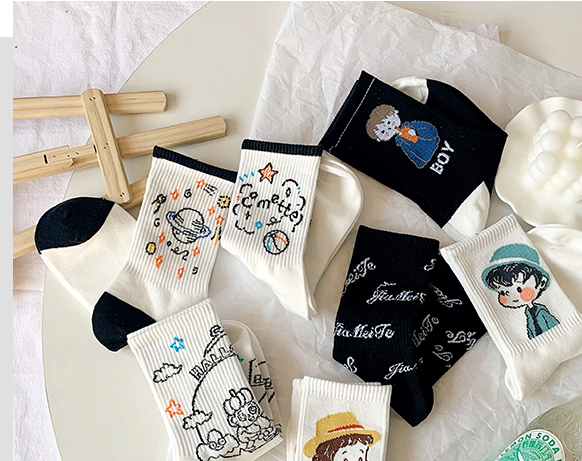 Hosiery in hosiery of female of lovely cartoon sock autumn winter ins tide Korea day department sweet girl student black and white stockings
