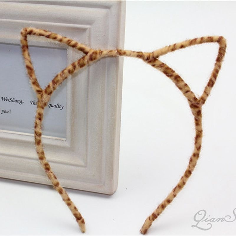 Color: black cat ears headband, pink cat ears headband, yellow leopard print cat ears headband, brown leopard print cat ears headband, charm red cat ears headband, wavy headband