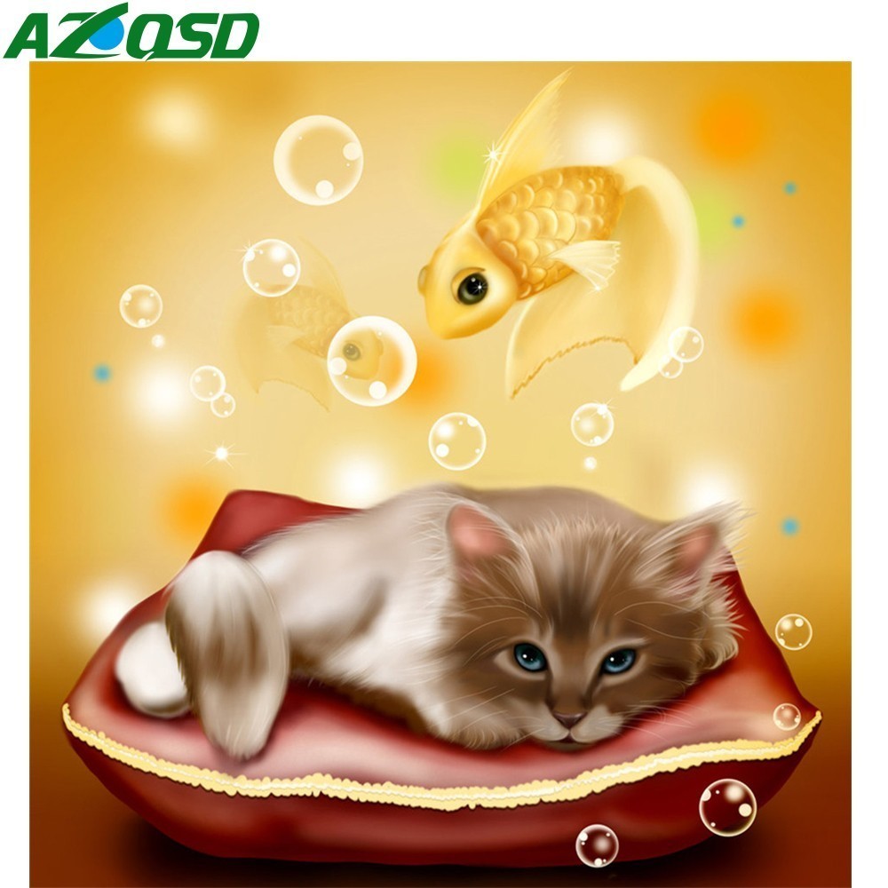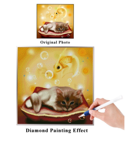 Cute cat, goldfish and diamond painting