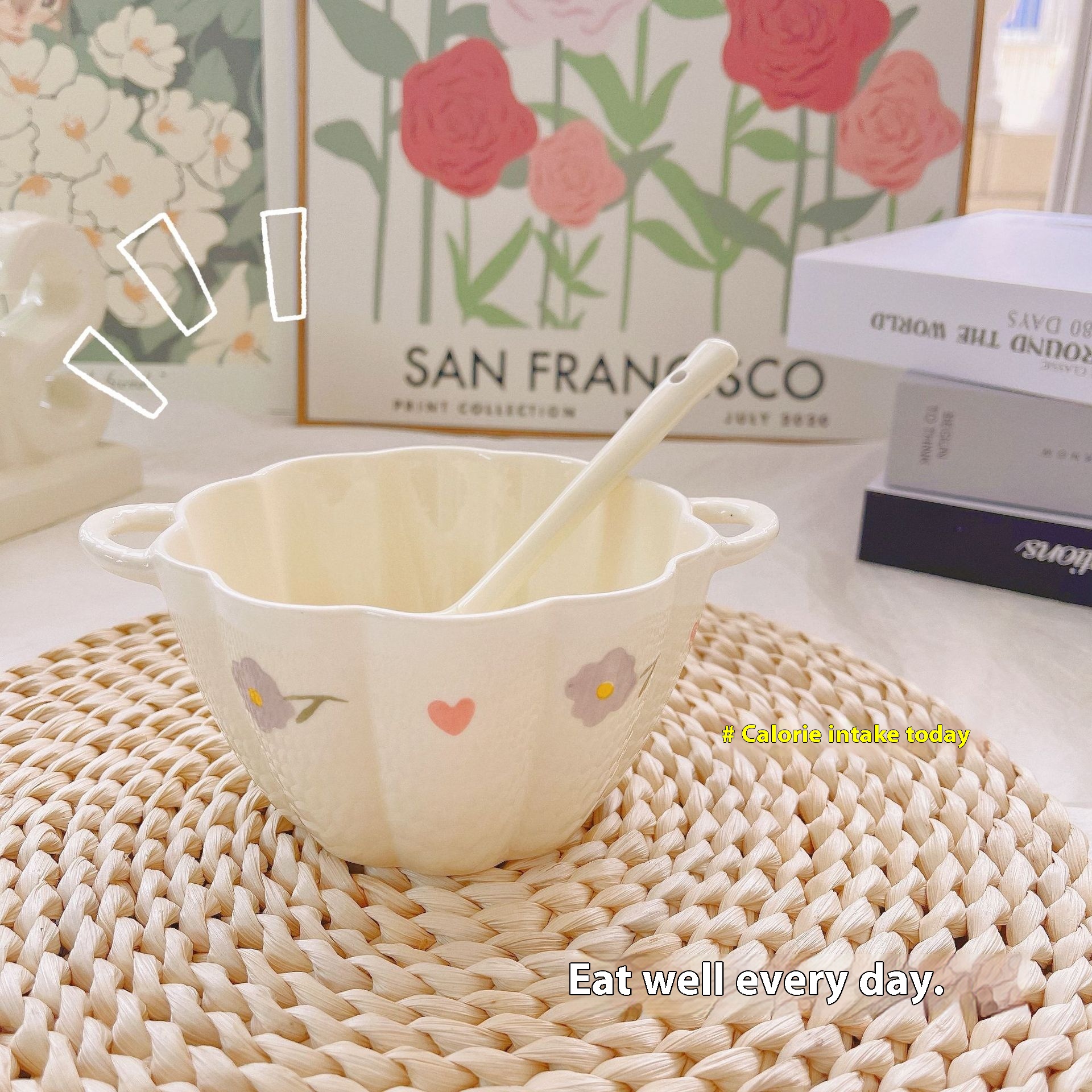 Cute Ceramic Bowl Cow Handle Bowl Long Handle Spoon