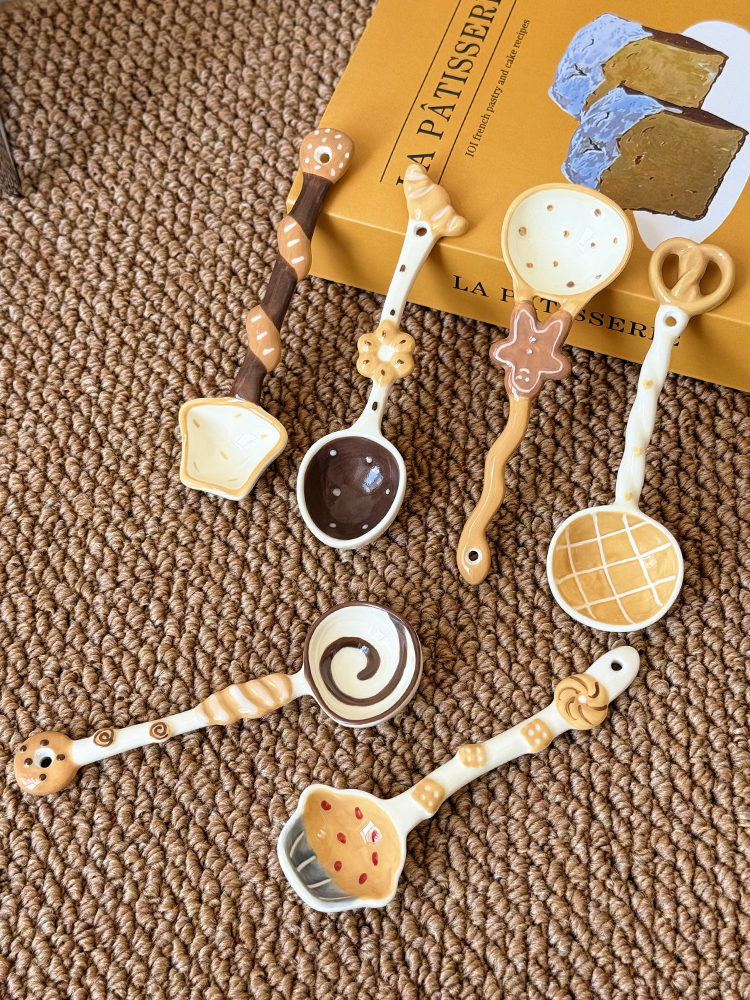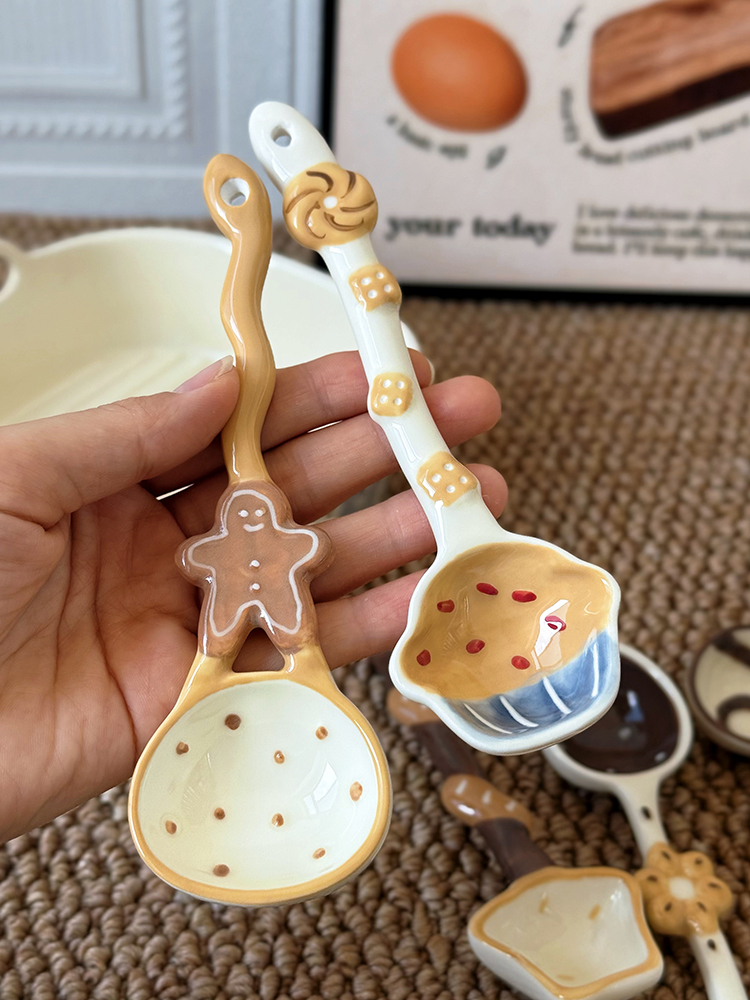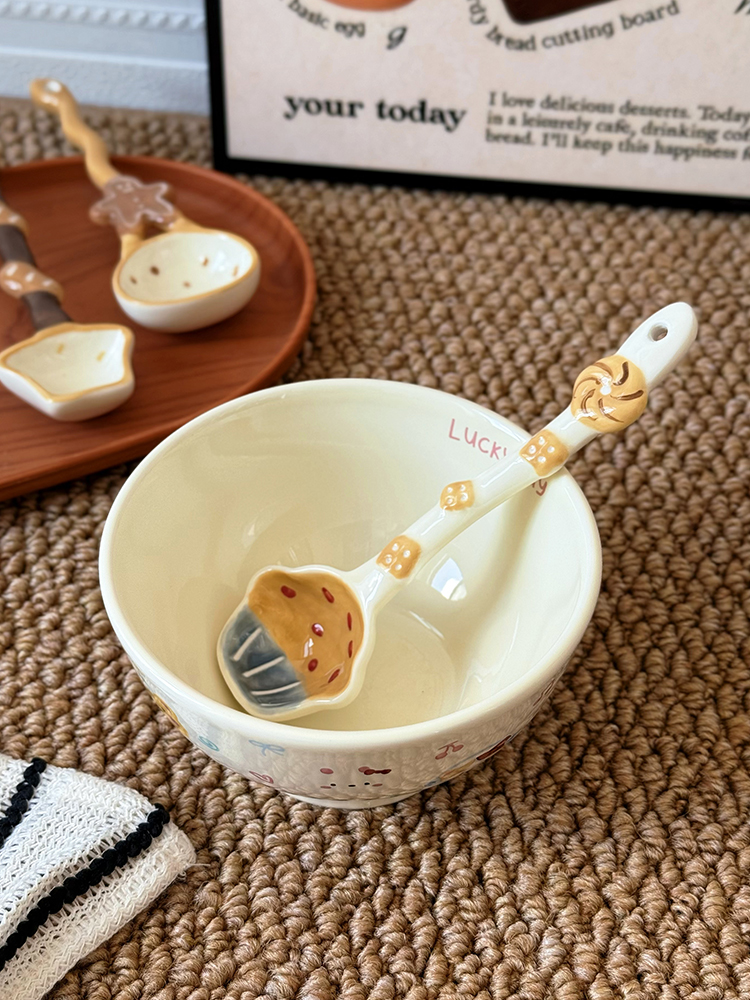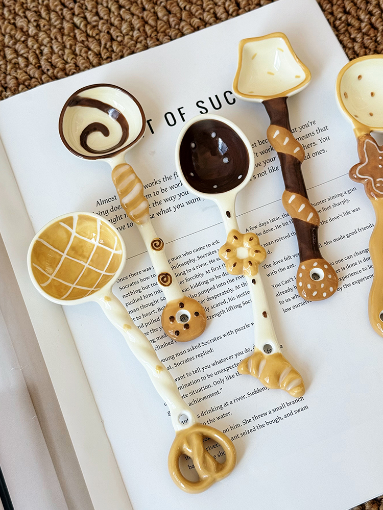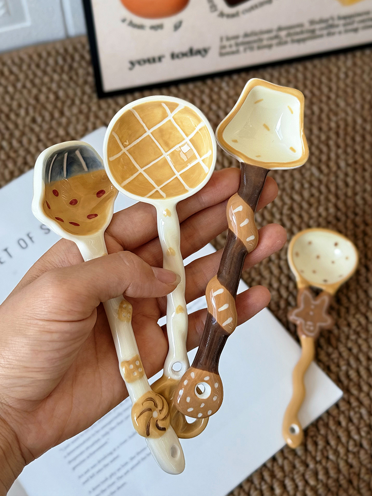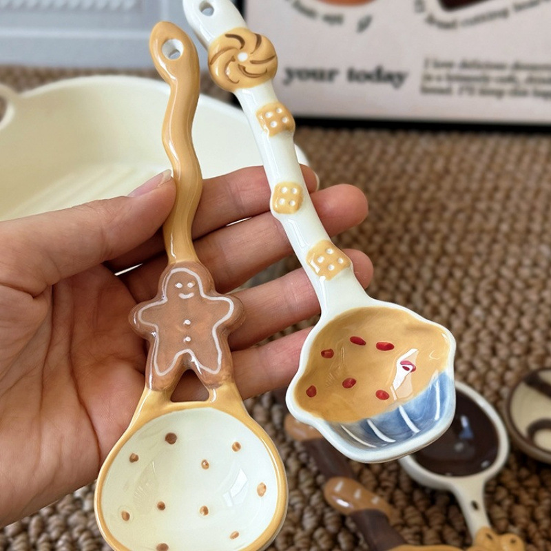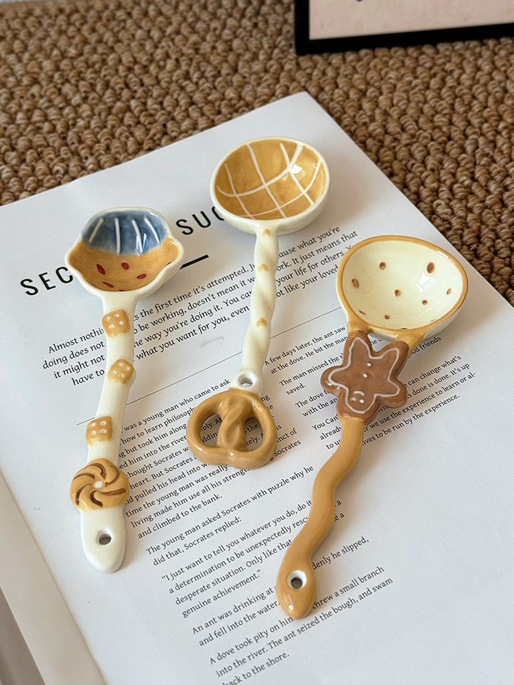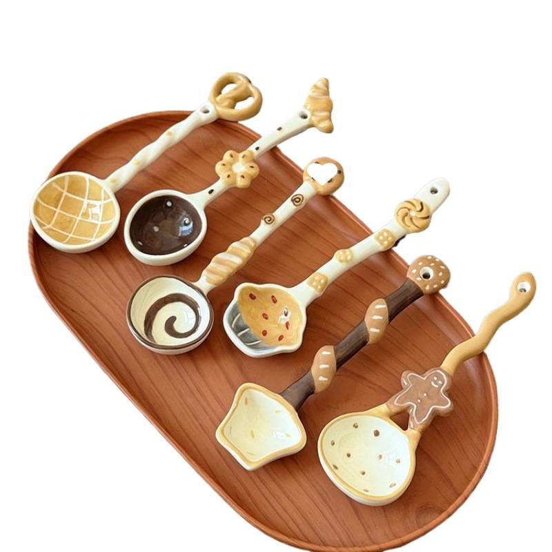Cute Ceramic Small Long Handled Cartoon Underglaze Colorful Soup Spoon