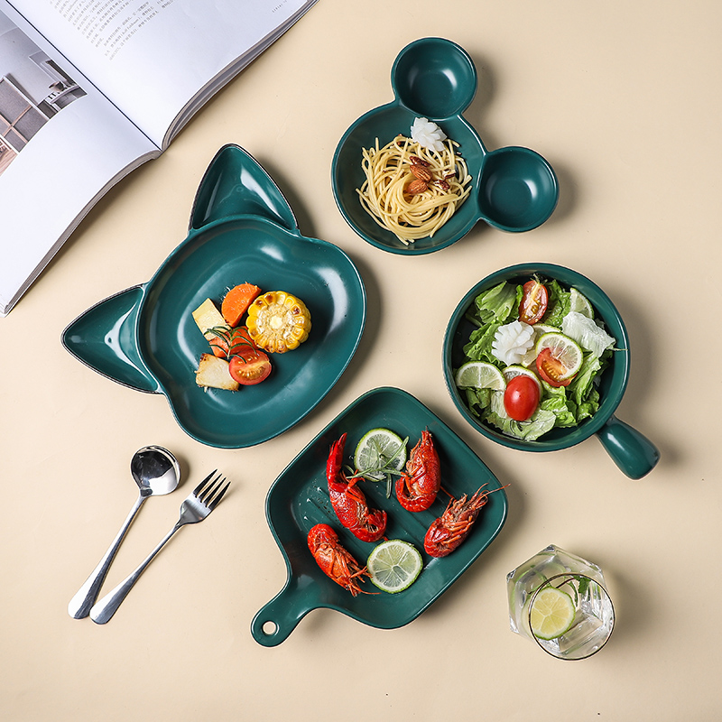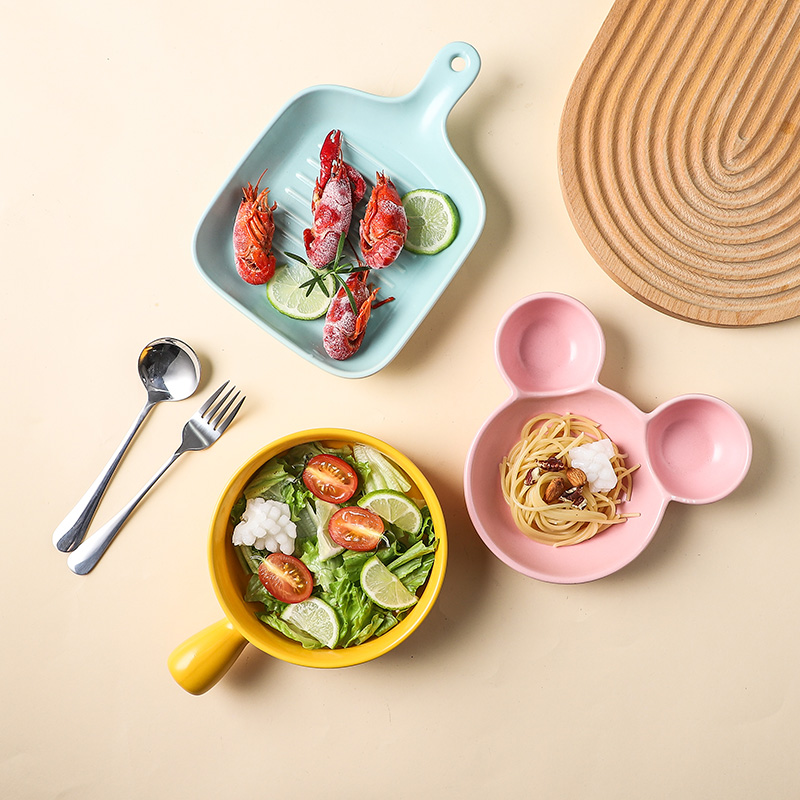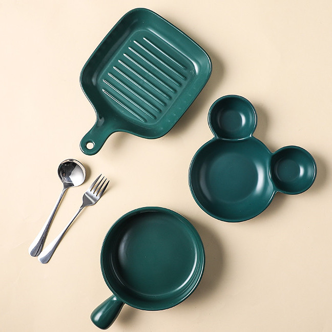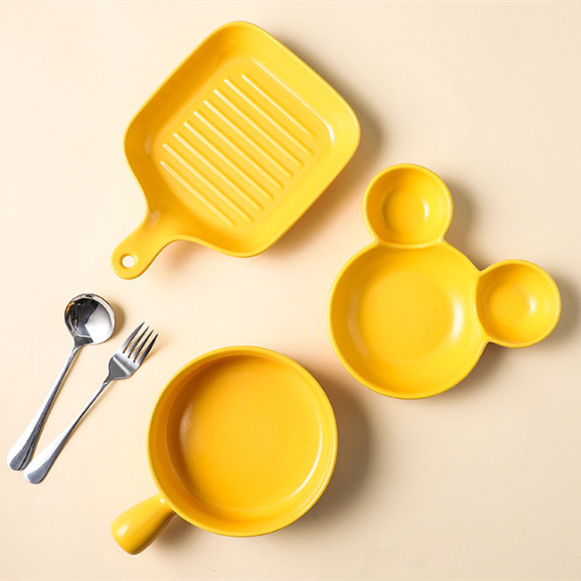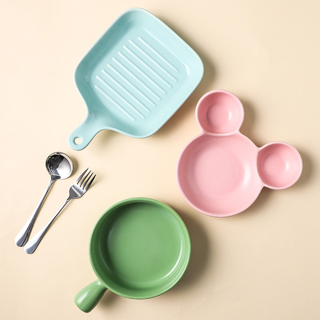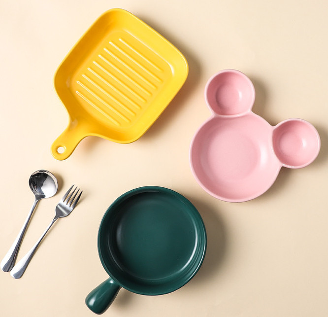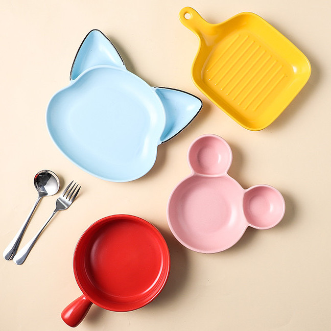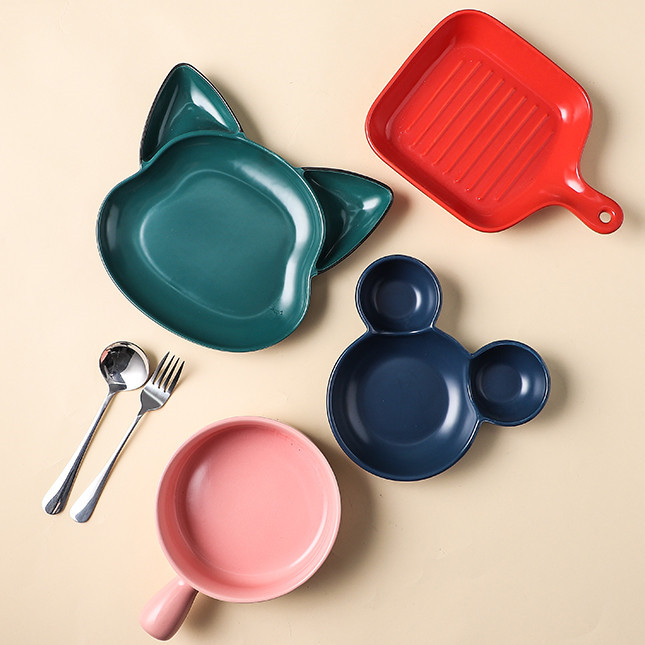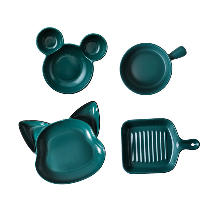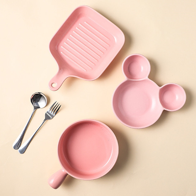 Pig shaped plate x1, plate x1, handle baking bowl x1, square baking plate x1, spoon x1, fork x1