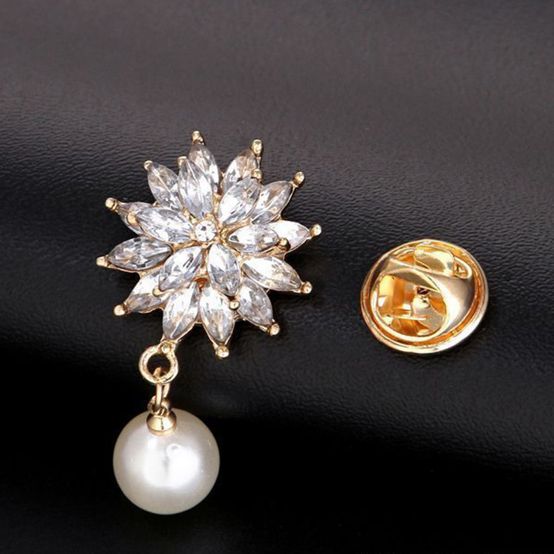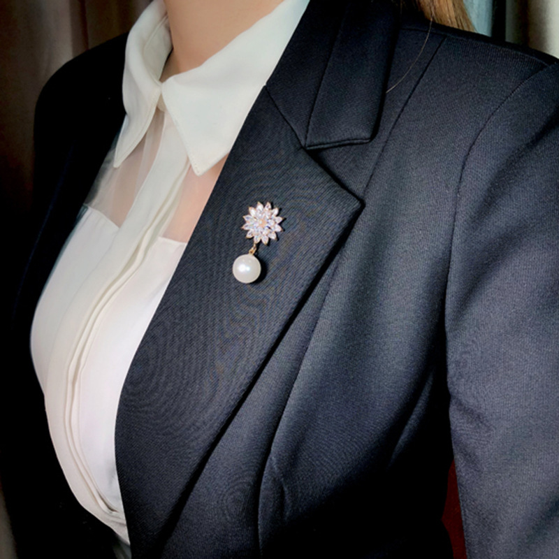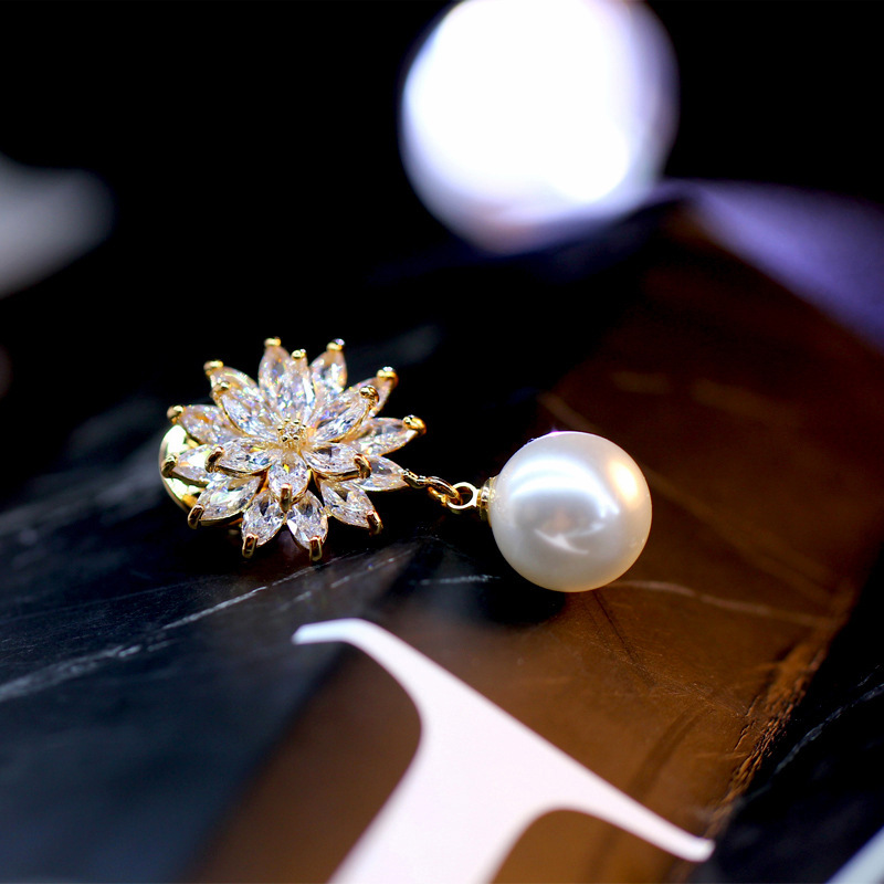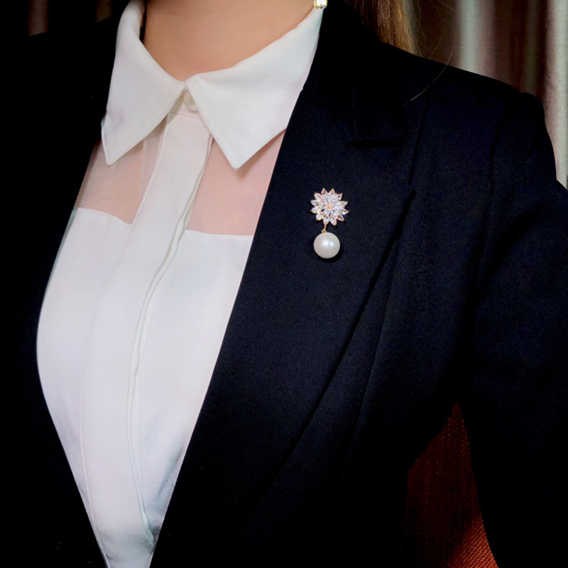 Cute Classic Style Gold-plated Zircon Snow Lotus Pearl Corsage Special-interest Design Elegant Exquisite High-end Brooch