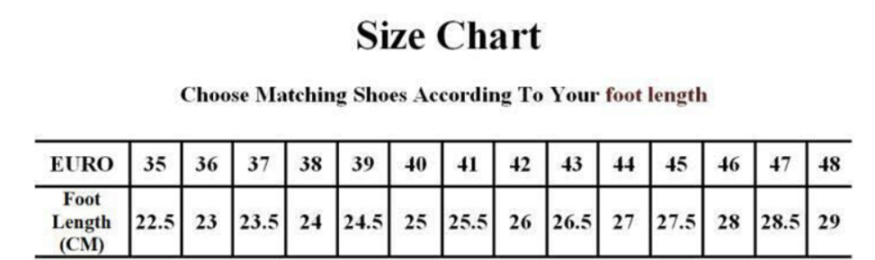Size: size 36-37 (recommended for size 35-36), size 38-39 (recommended for size 37-38), size 40-41 (recommended for size 39-40), size 42-43 (recommended for size 41-42 Size to wear), 44-45 size (recommended to wear 43-44 size)