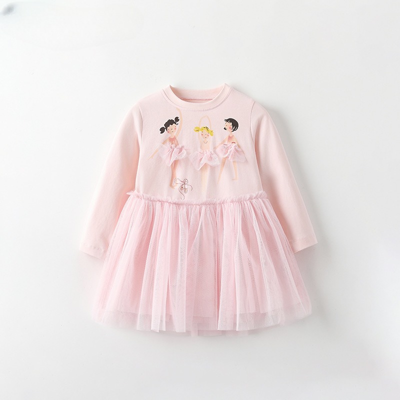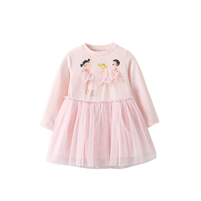 Cute Crew-neck Long-sleeve Dress Suitable For Toddlers