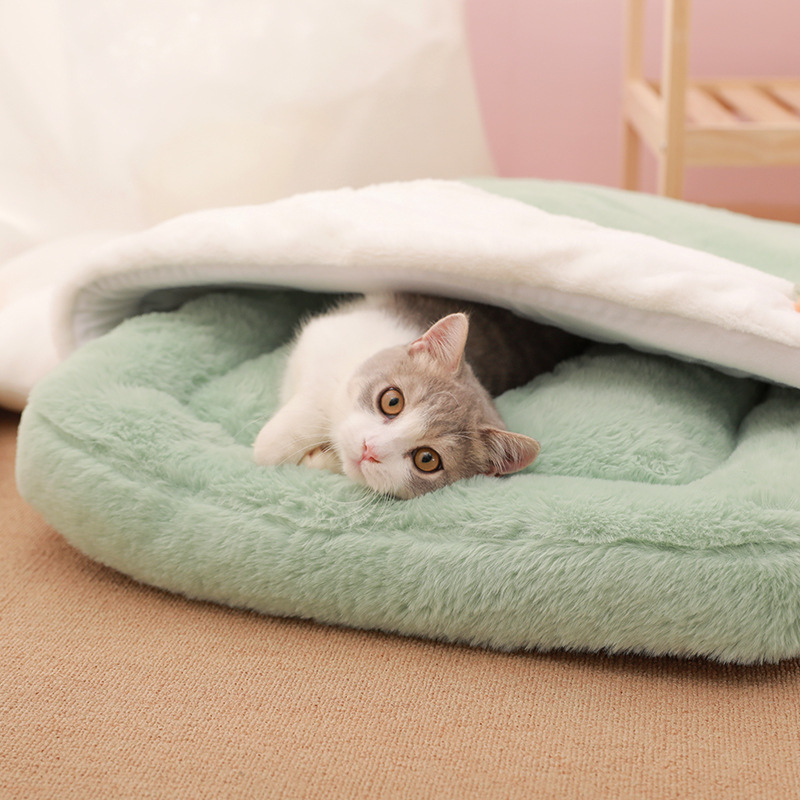 Name: Flower tea cup cat sleeping bag milk (coffee/green) (S/M)