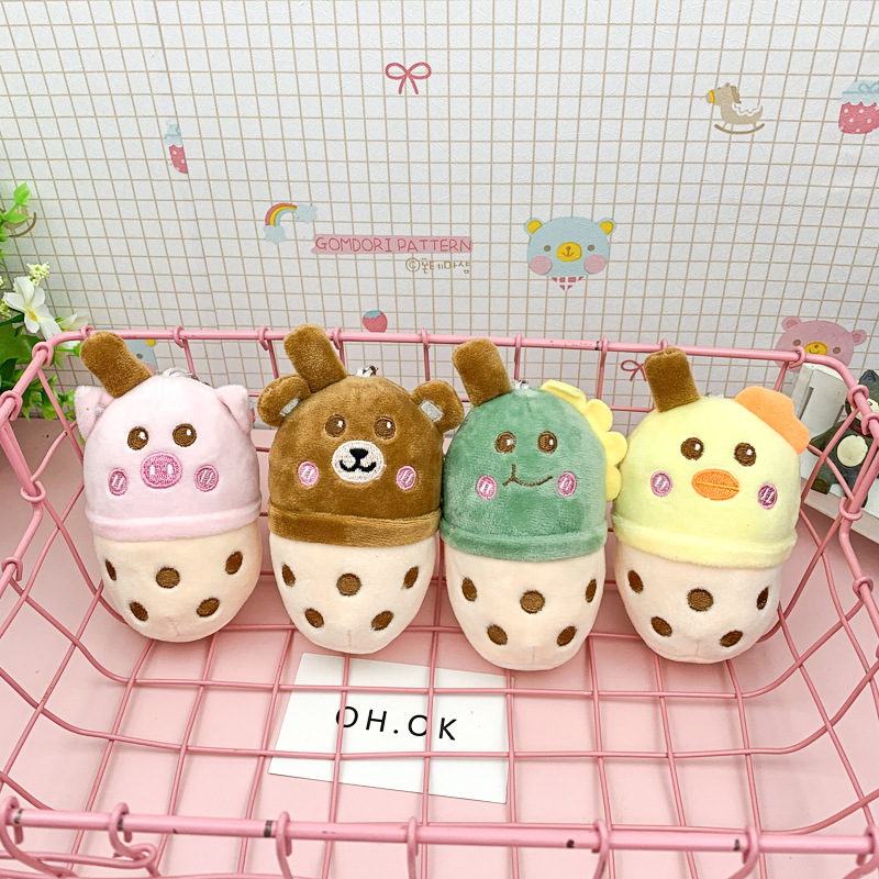 Cute Dinosaur Bear Milk Tea Cup Plush Pendant