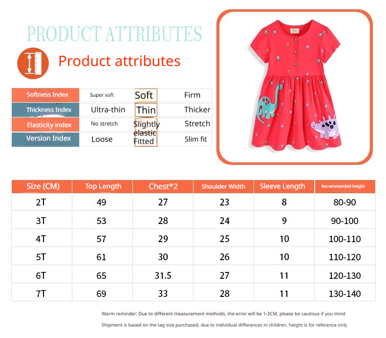 Suitable Height: 2T is recommended for 80–90 cm, 3T for 90–95 cm, 4T for 95–100 cm, 5T for 100–110 cm, 6T for 110–120 cm, and 7T for 120–130 cm.