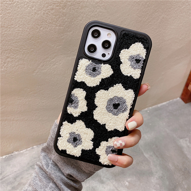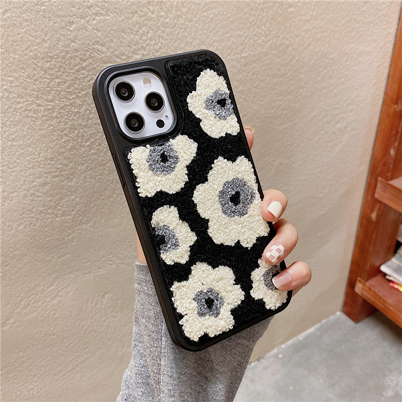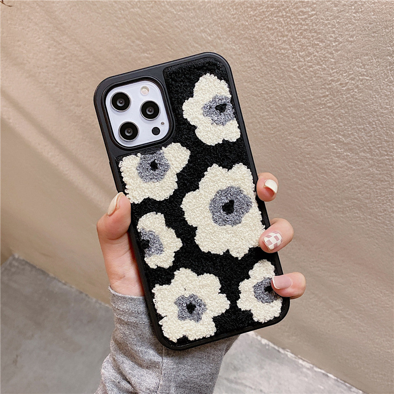 Leather hard shell plush black flowers