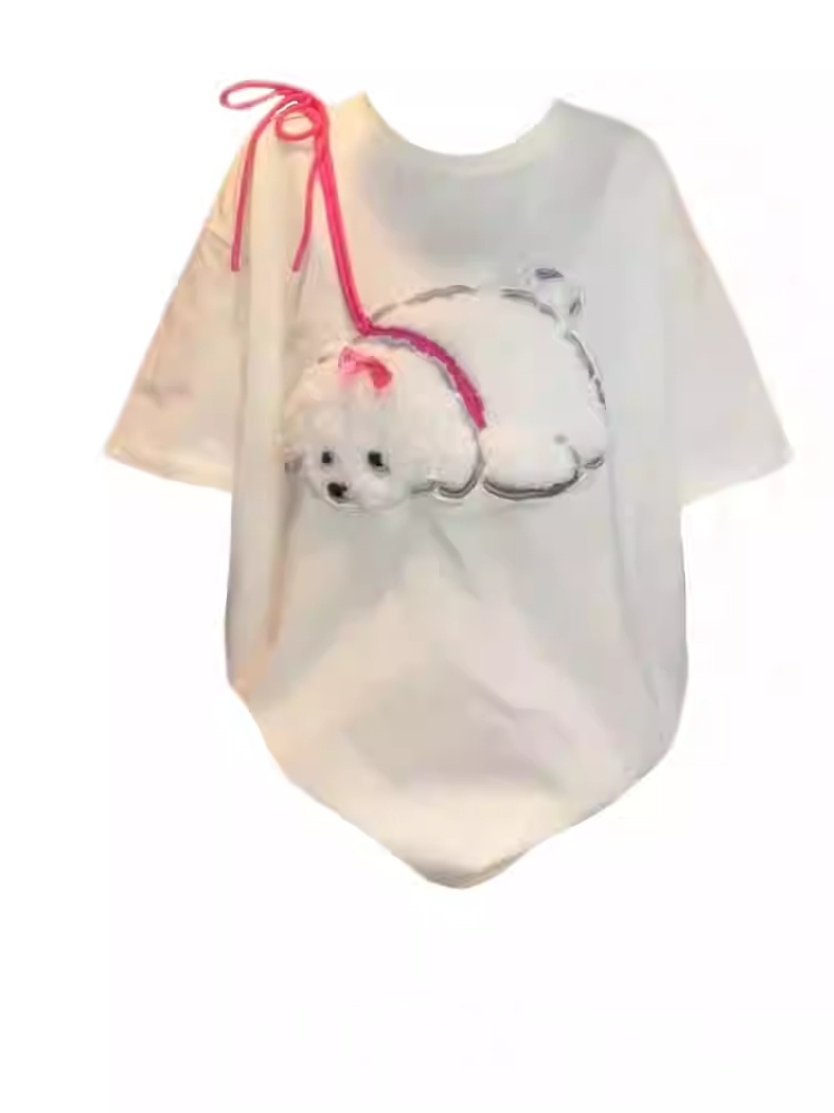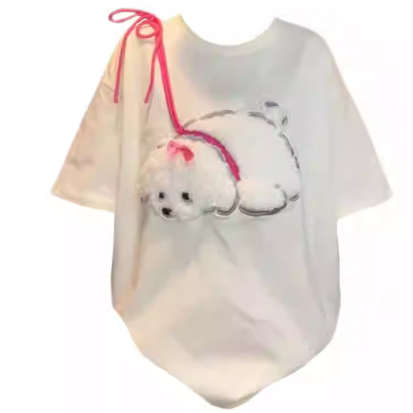 Cute Flocking Cartoon Puppy Short-sleeved T-shirt