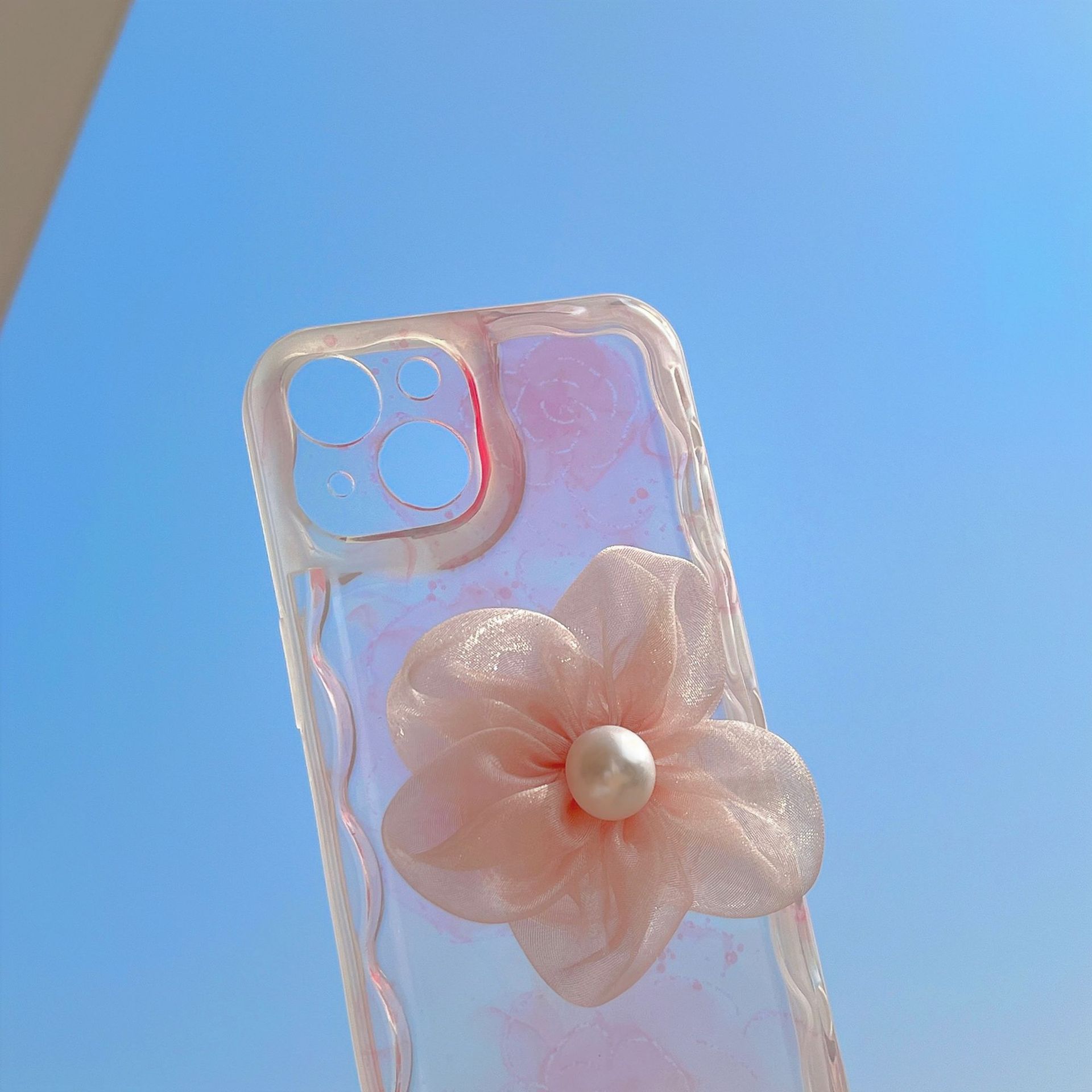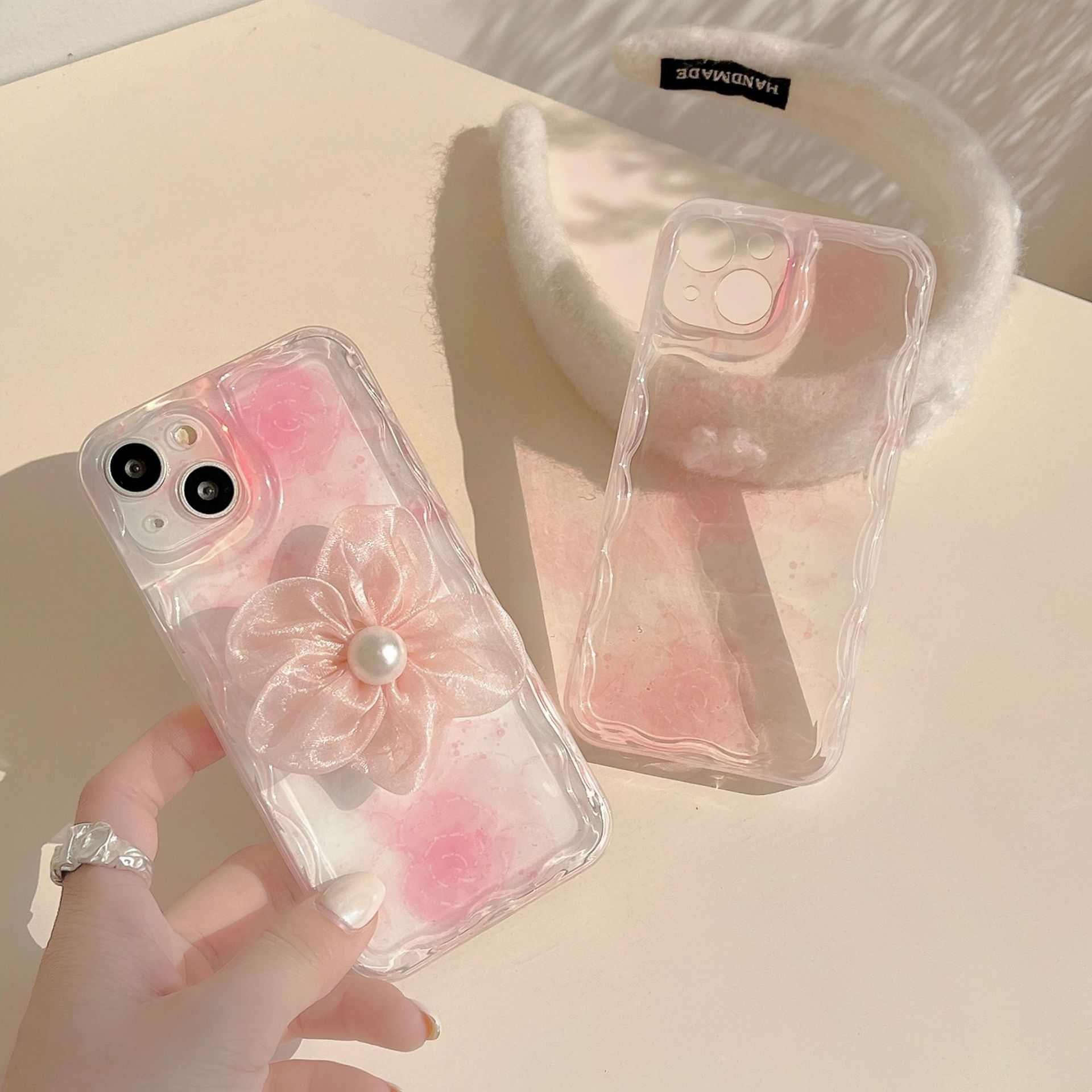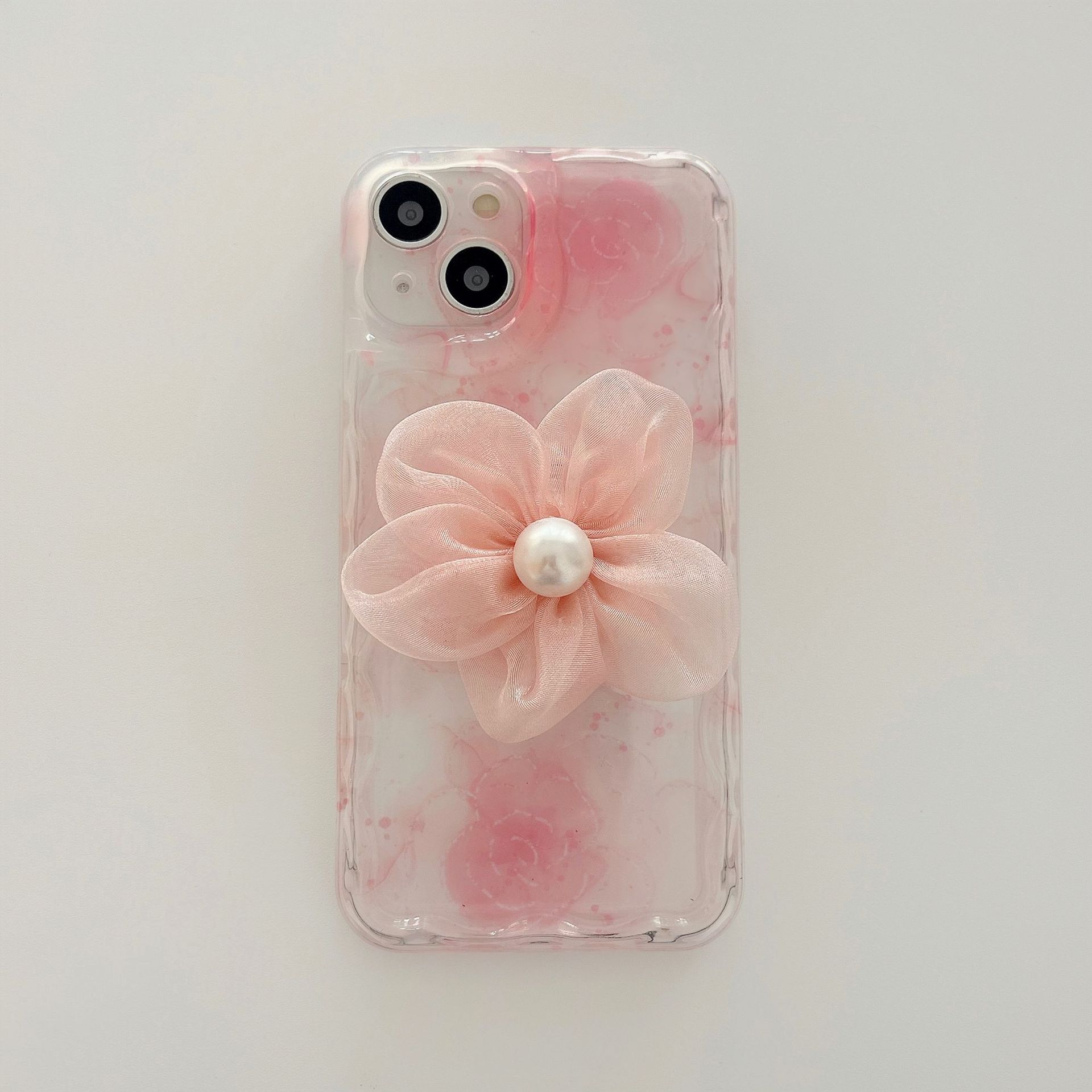 Color: cream edge transparent powder phone case (single shell), cream edge transparent powder phone case bracket