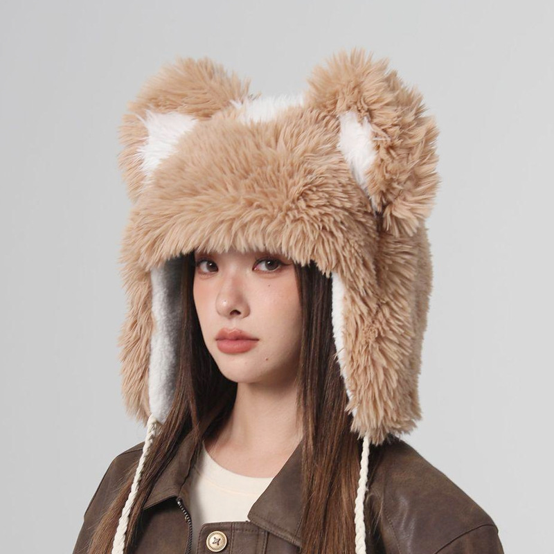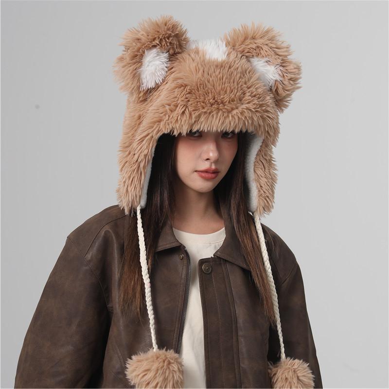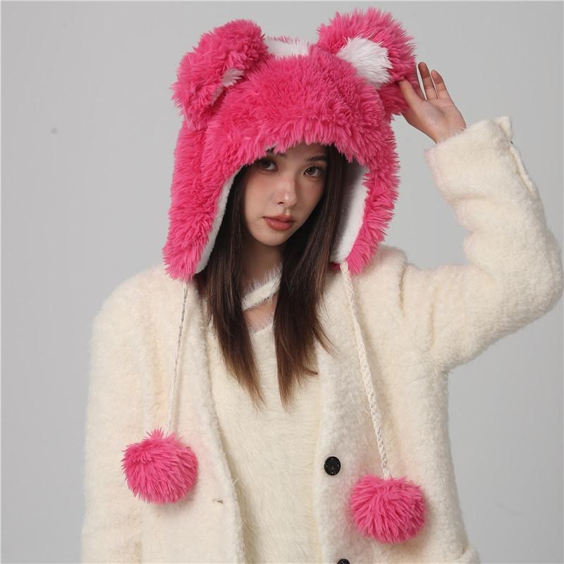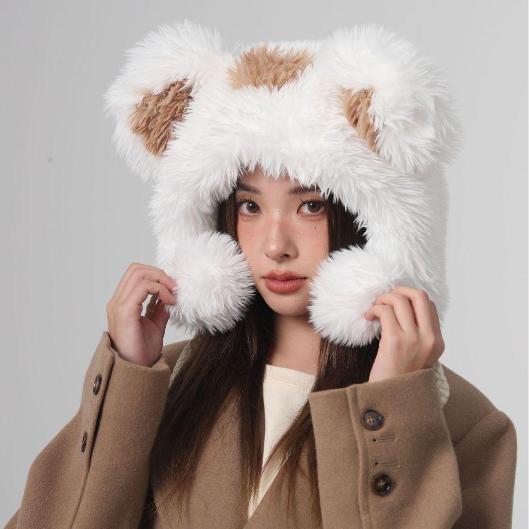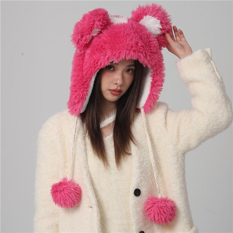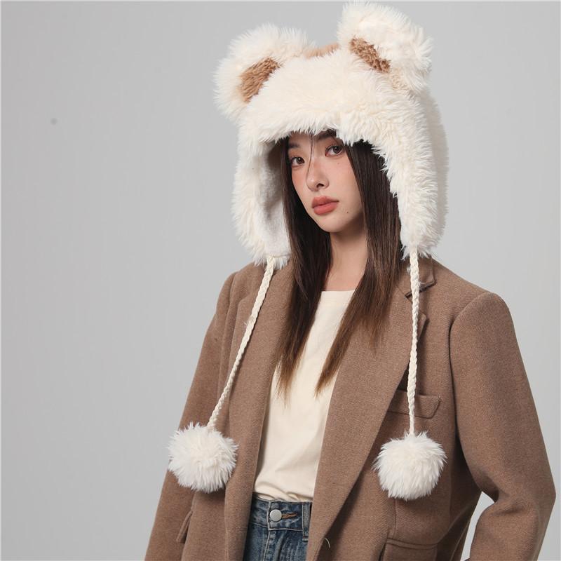 Cute Fur Ball Bucket Hat Women's Winter Plush Warm