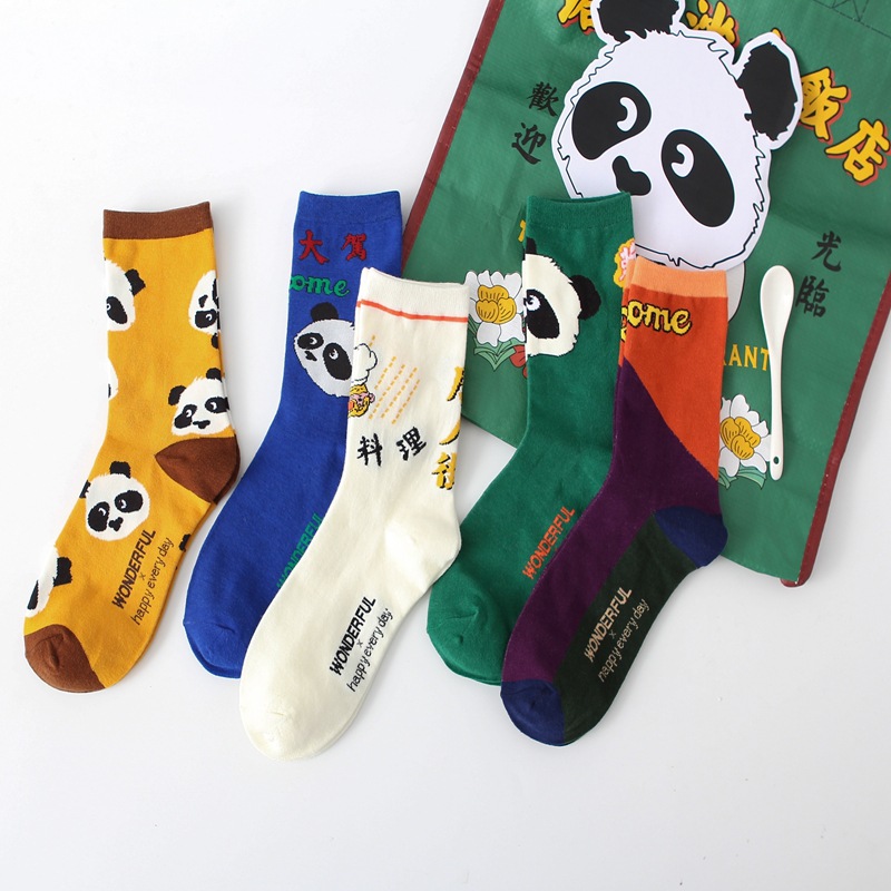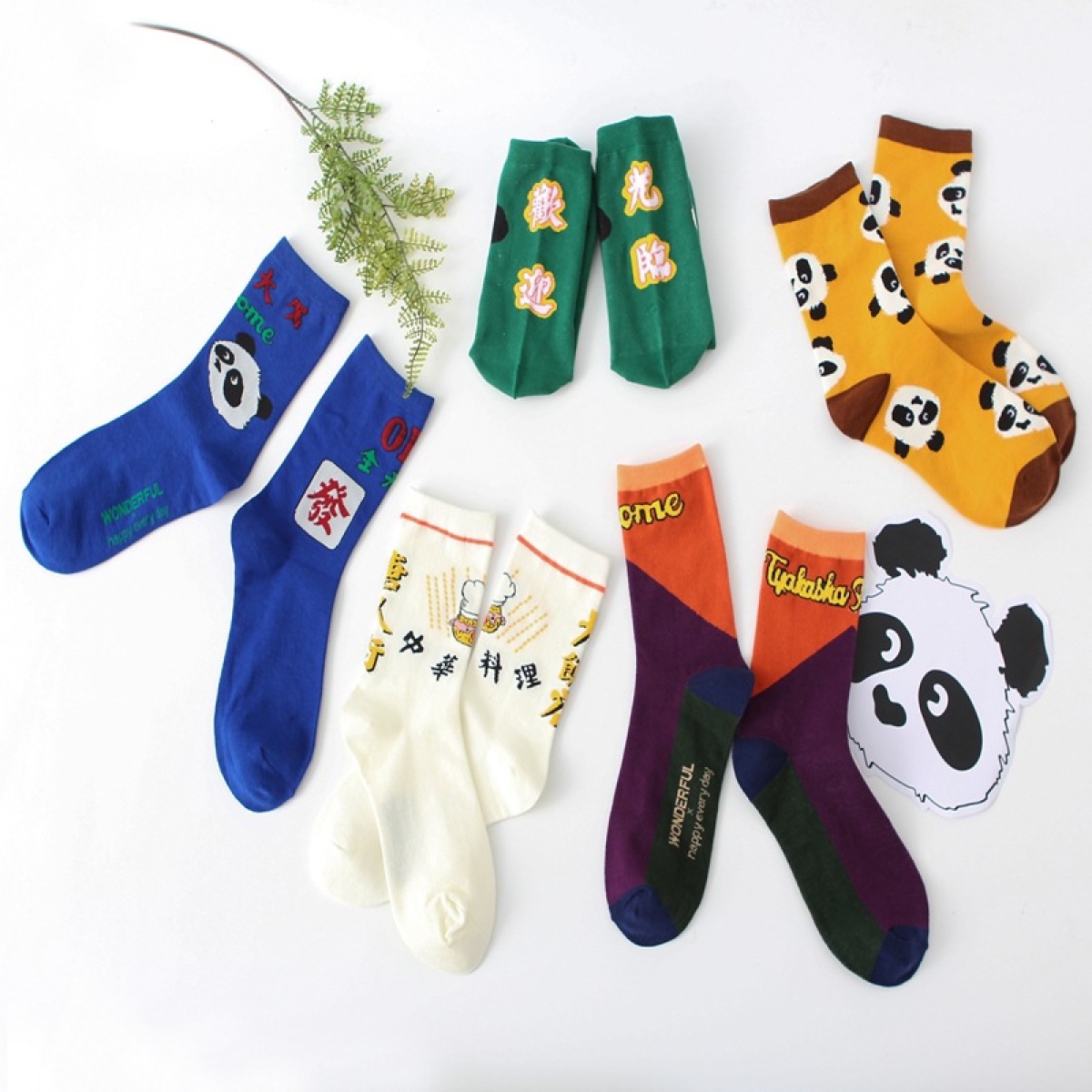 Pattern: dark green-panda head, yellow-lesser panda head, white-Chinatown hotel, royal blue-exotic seafood, color matching-welcome, panda multicolor mixed