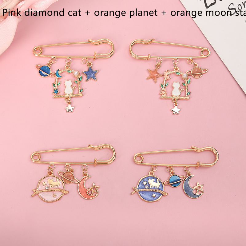 C : Pink diamond cat + orange planet + orange moon star