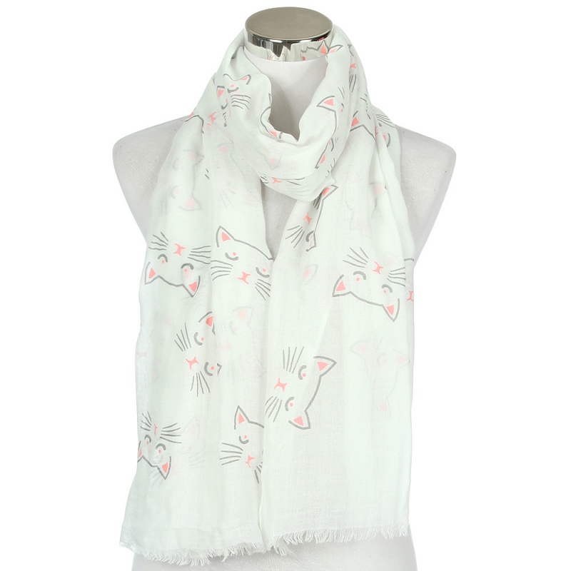 Name: Cat ScarfSize: 70x180cmcolor: WhiteMaterial: Polyester