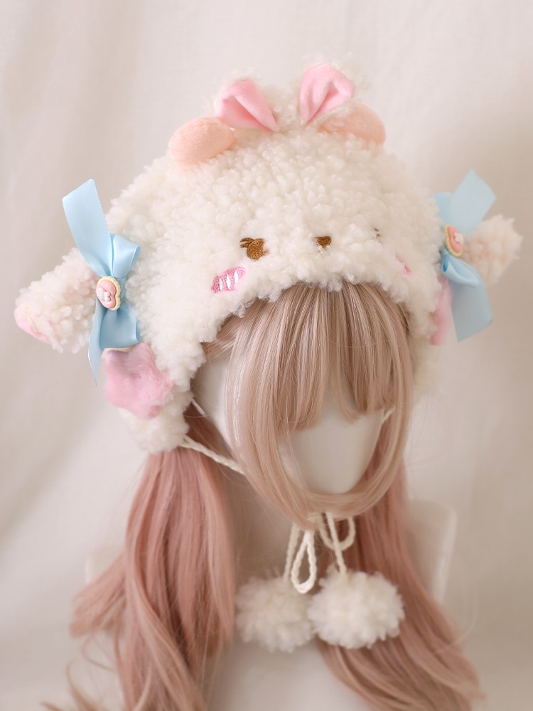 Color classification: pink bow knot sheep ear earmuffs hat, blue bow knot sheep ear earmuffs hat