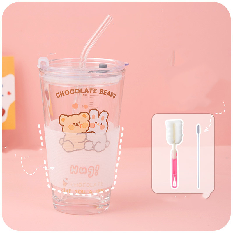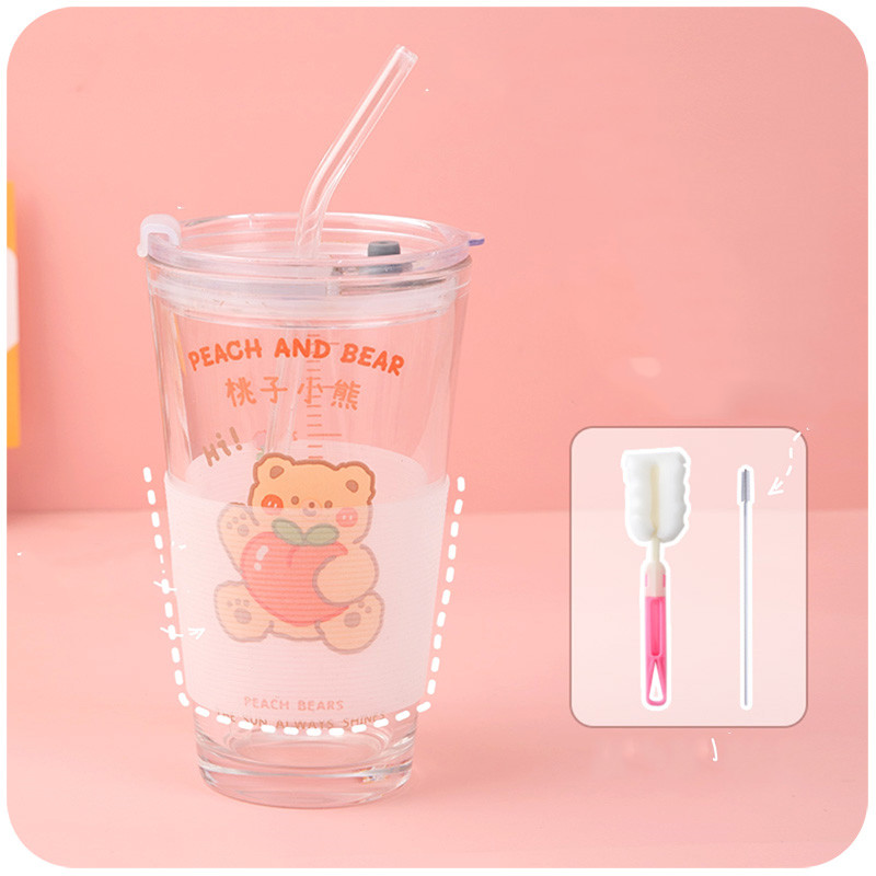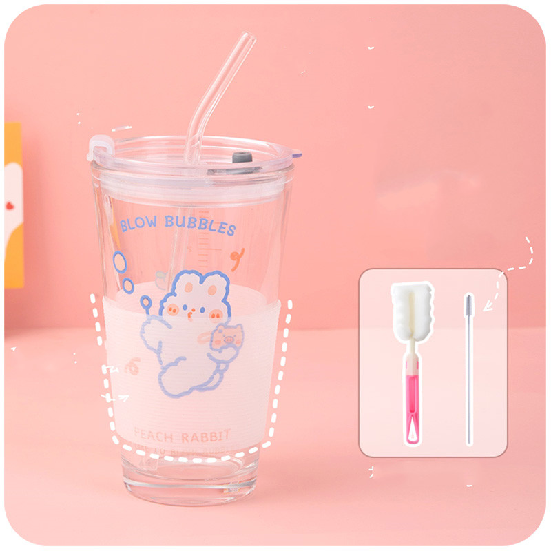 Cup + Cup Lid + Glass Straw + Cup Cover + Cup Brush + Straw Brush*1