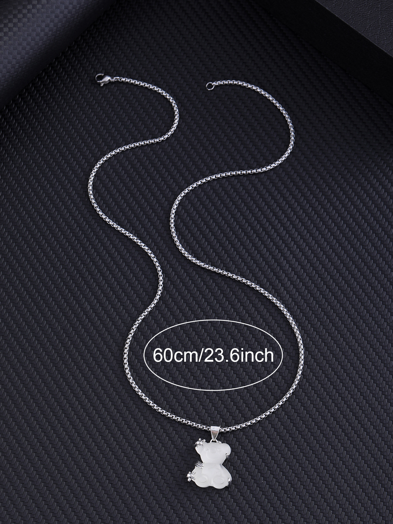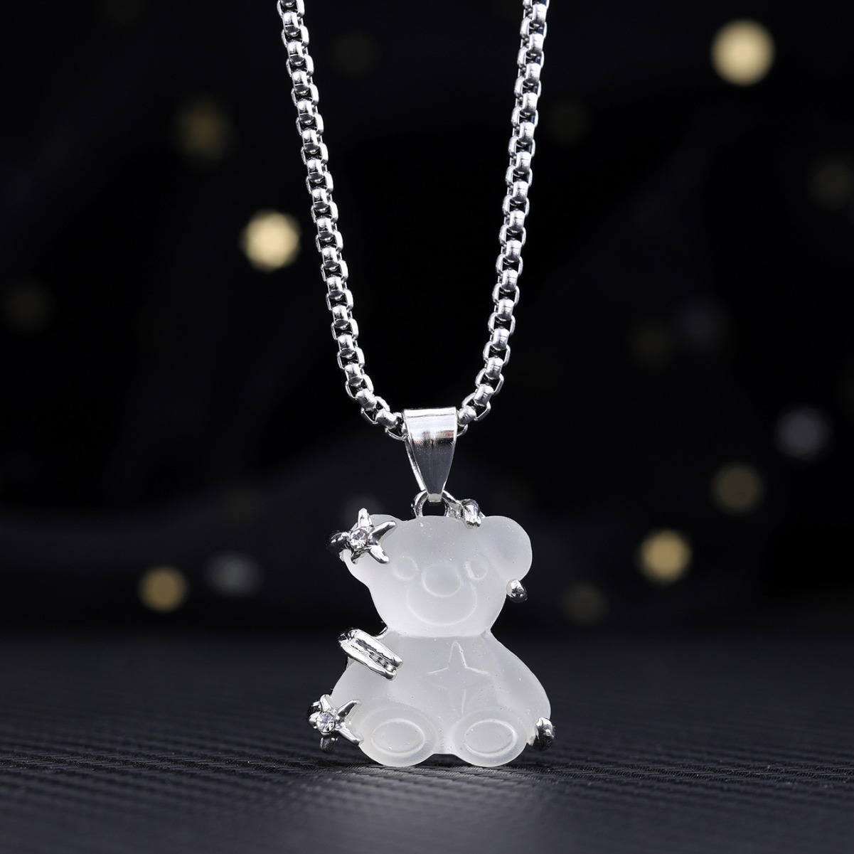 Cute Little Bear Pendant White K-color Alloy Titanium Steel Lock Chain