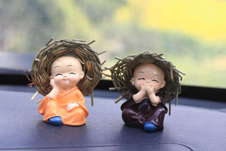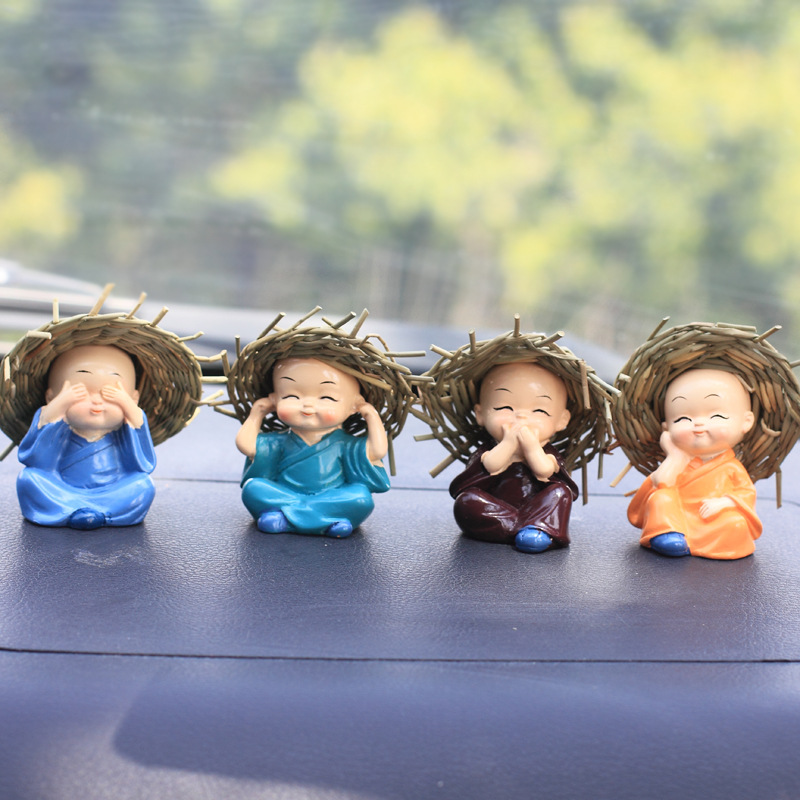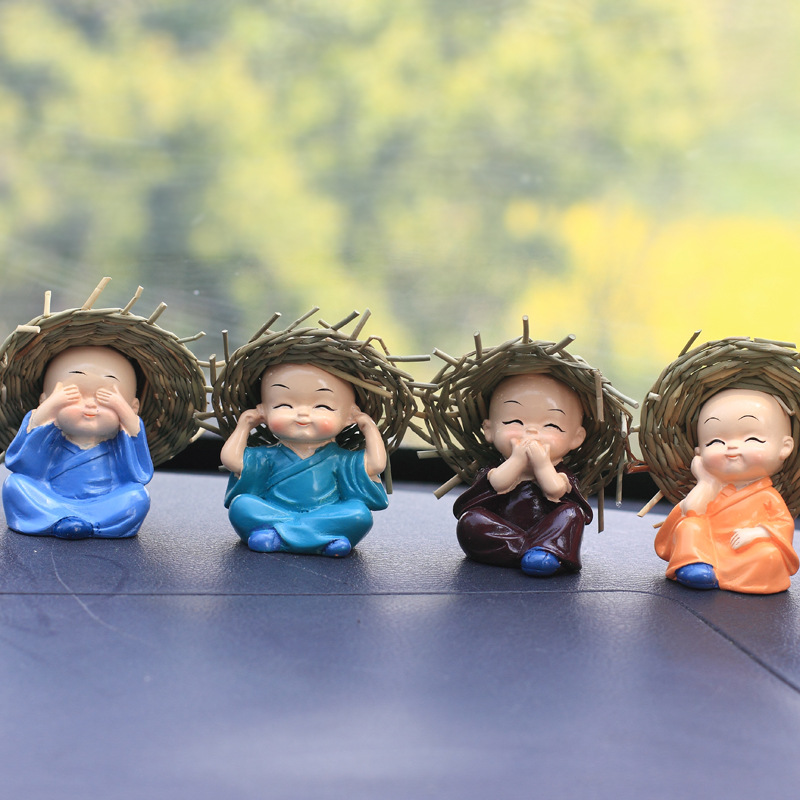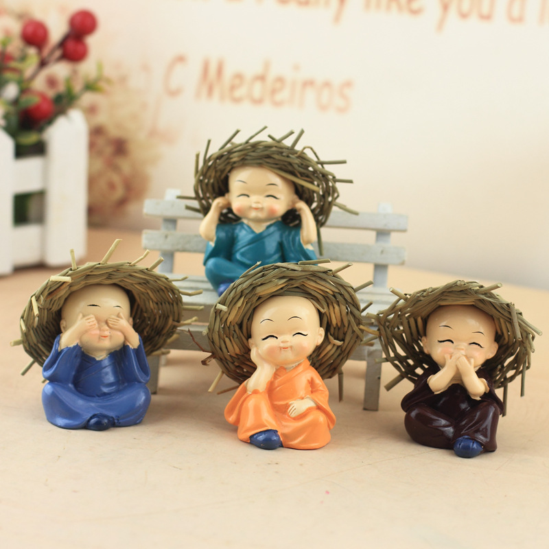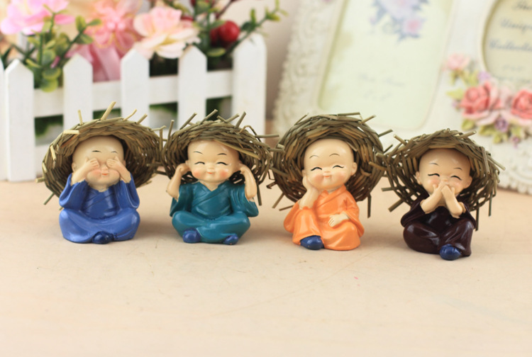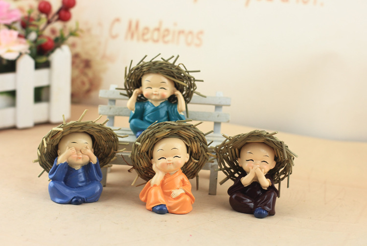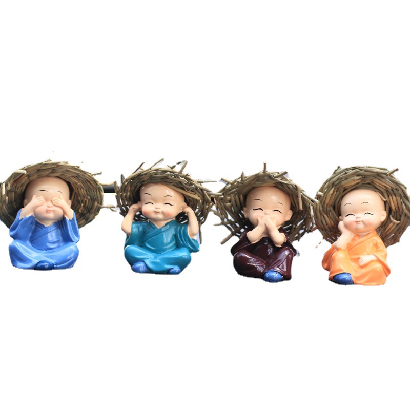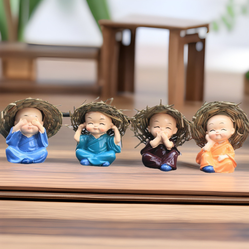 Color: Set of Four “Cuckoo” Straw-Hat Monk Figurines