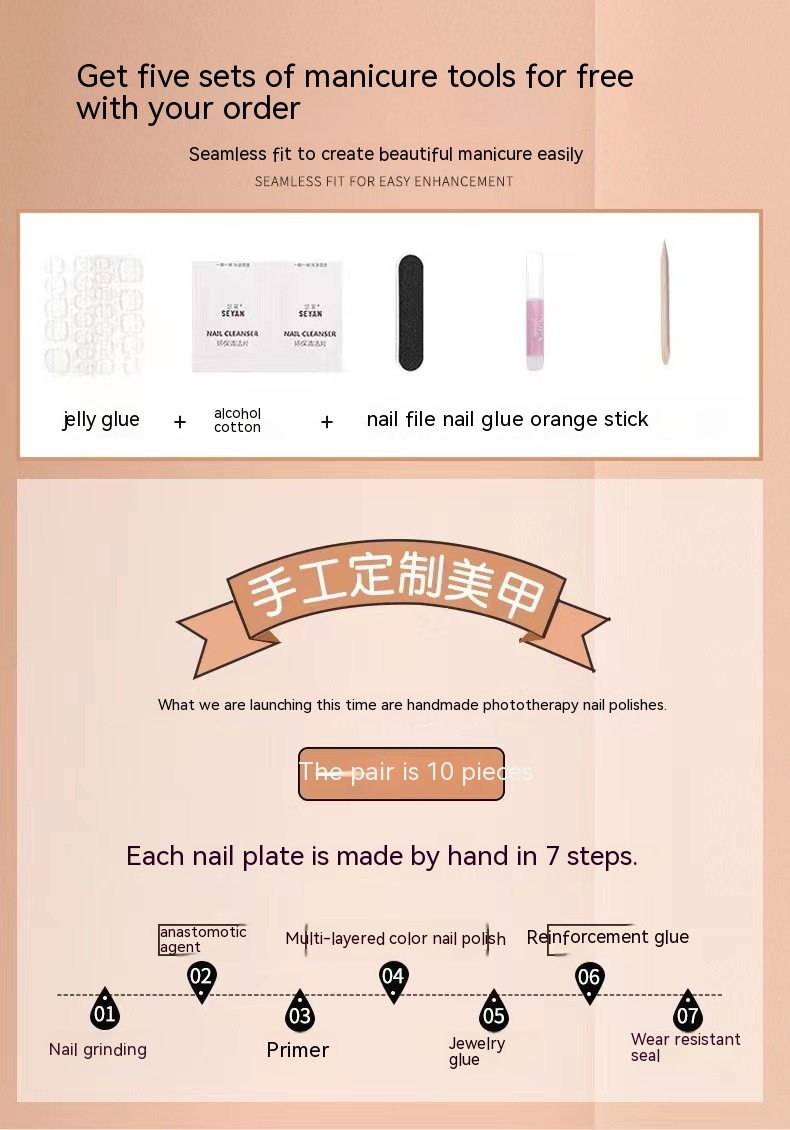 Nail sticker * 10+jelly glue+alcohol cotton+nail file+nail polish glue+orange wood stick