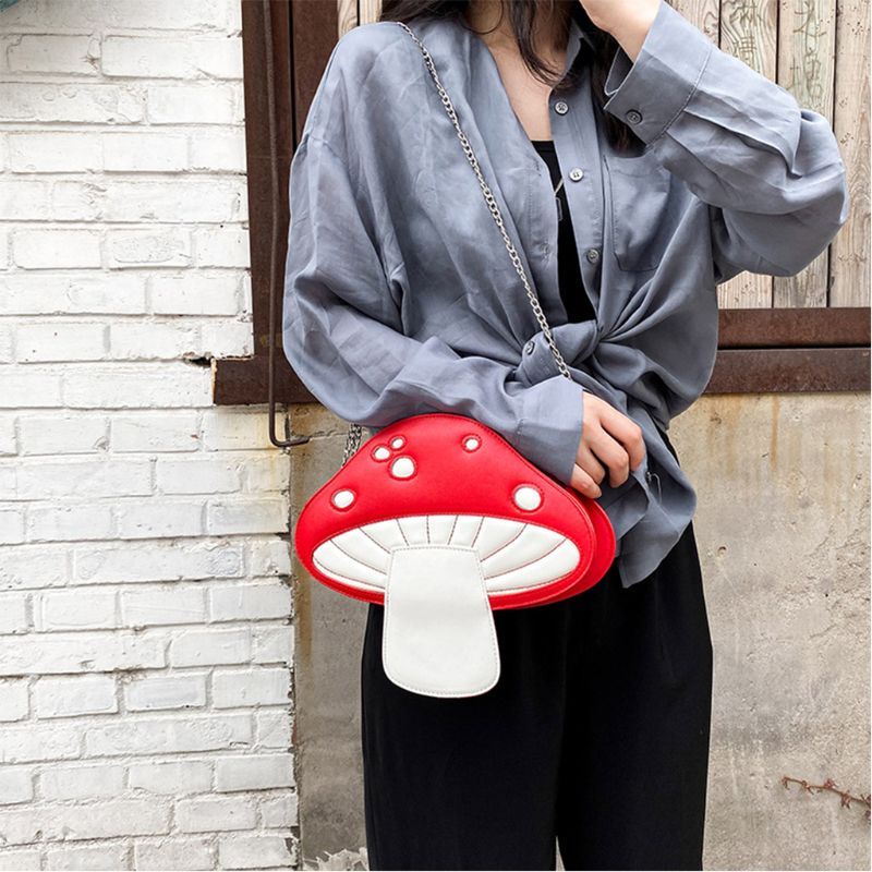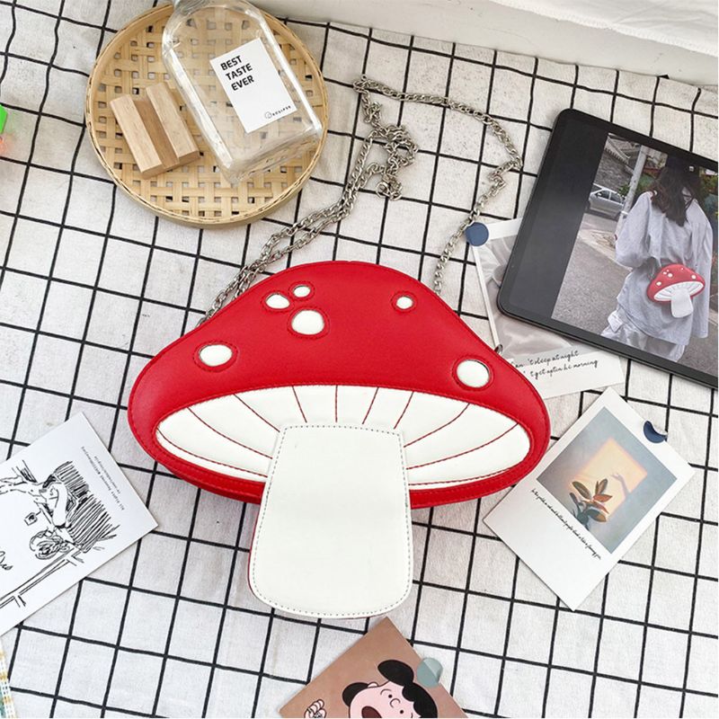 Fashionable and cute design in the shape of a mushroom. Detachable chains and zipper, can be used as shoulder bag, handbag.
