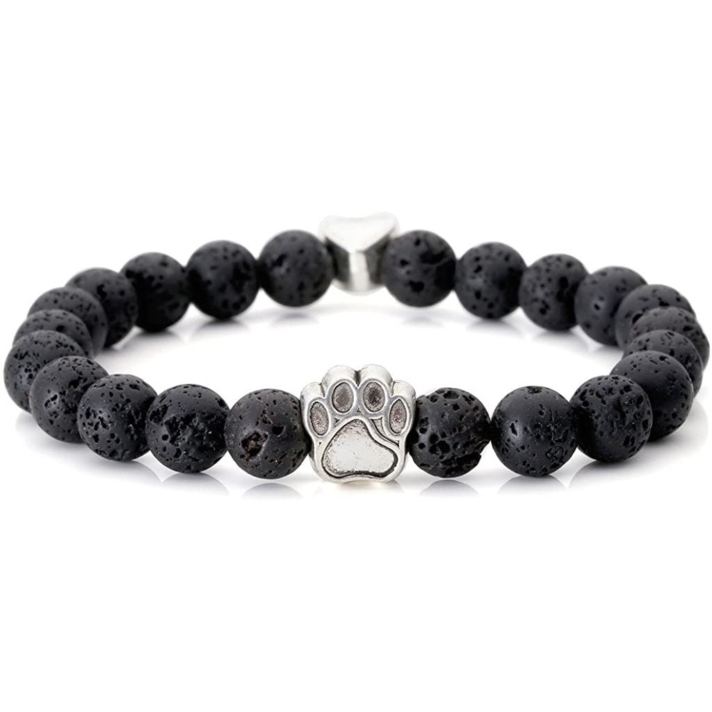 Color: white bark pine dog's paw heart bracelet, Tiger Eye dog's paw heart bracelet, volcano dog's paw heart bracelet, Blue Pine dog's paw heart bracelet, volcano colorful dog's paw heart bracelet, Sunstone dog's paw heart bracelet