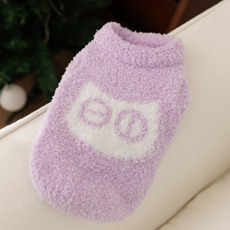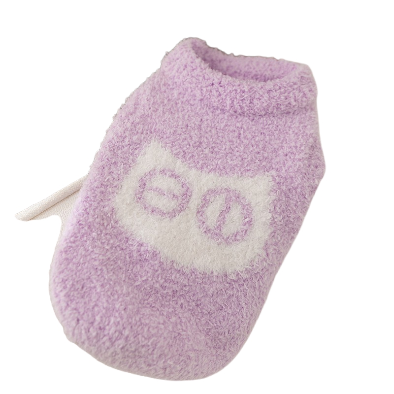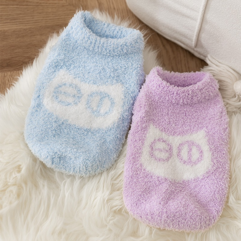 - Cute design: The feature is a playful owl face pattern (in matching blue/purple tones), adding a touch of whimsy to your pet's winter look.