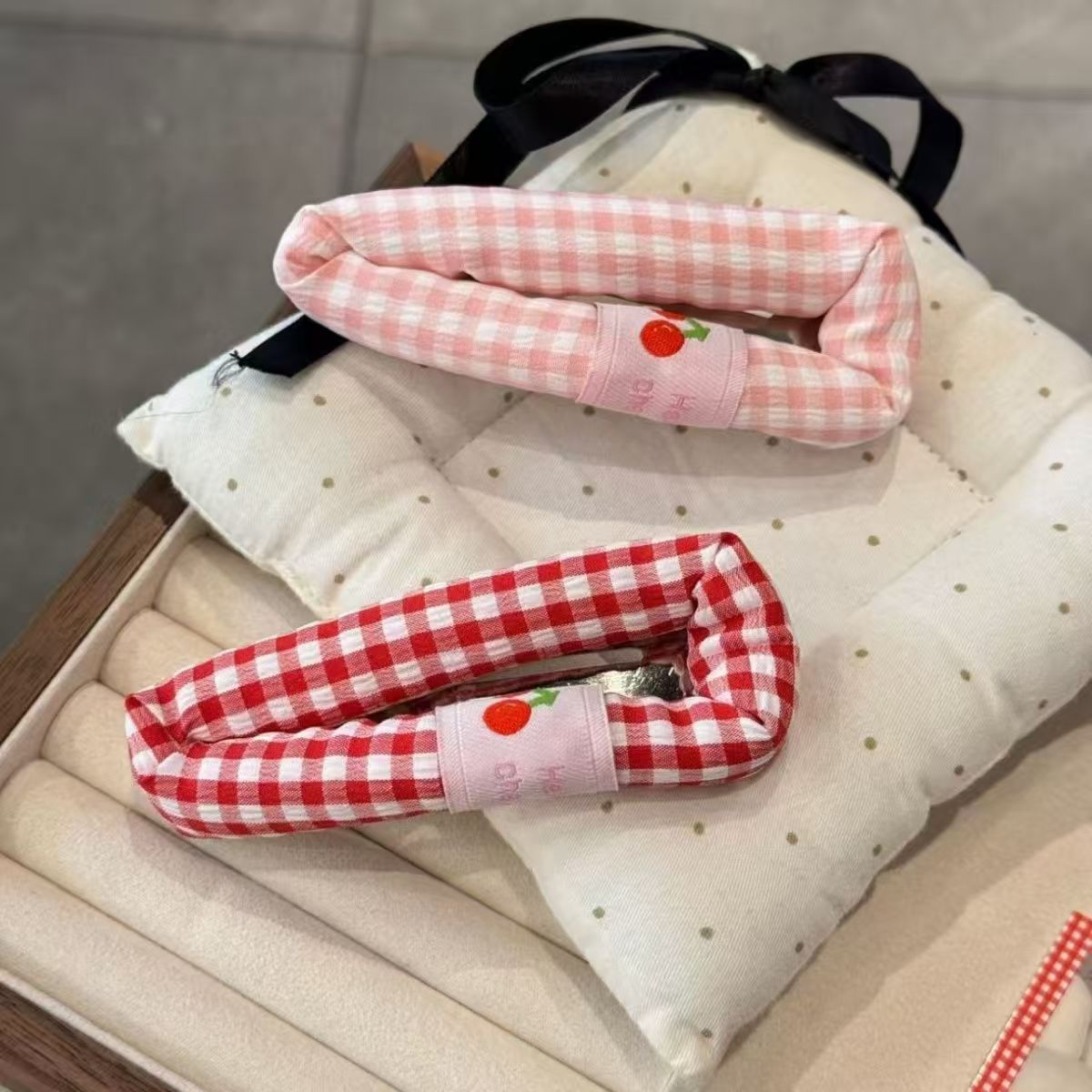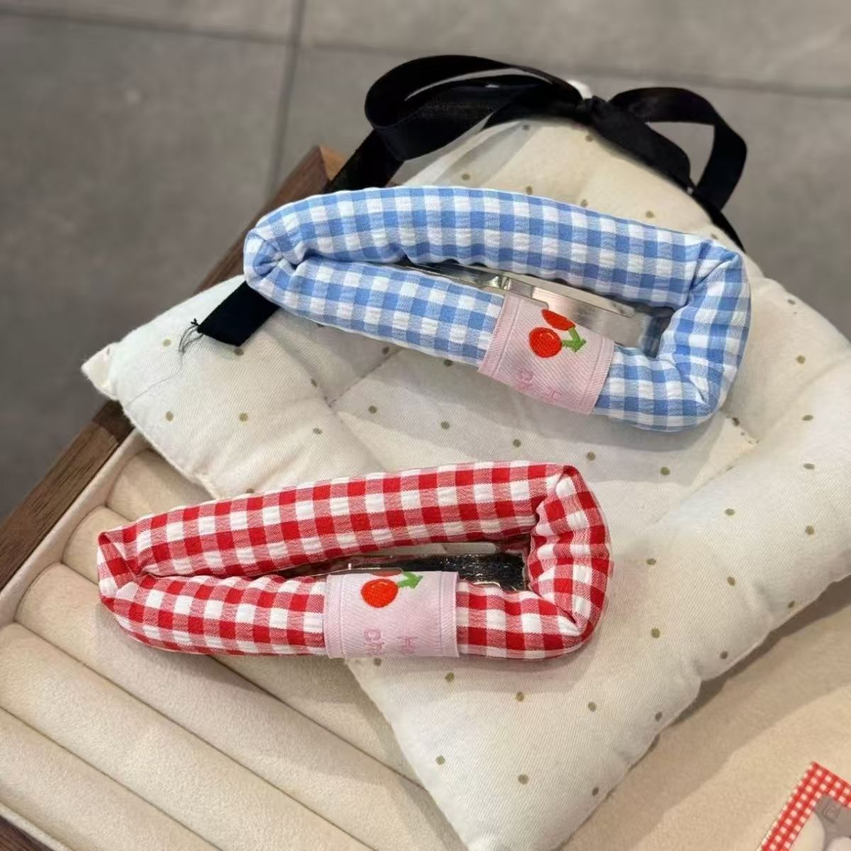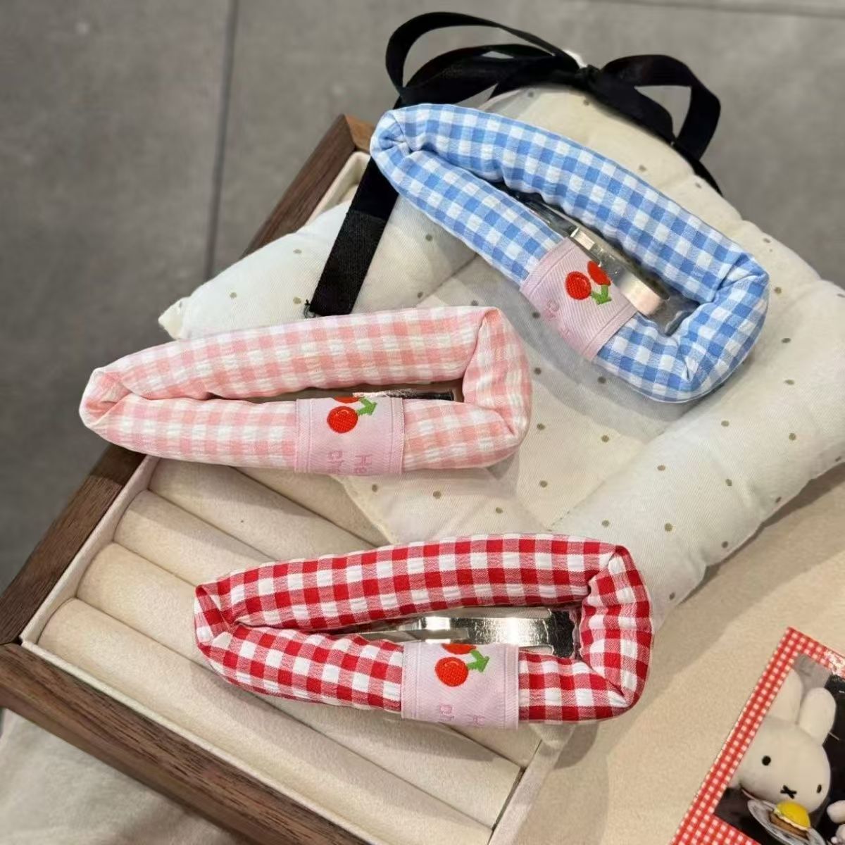 Color: blue checkered Cherry, pink check Cherry, red checked pattern Cherry