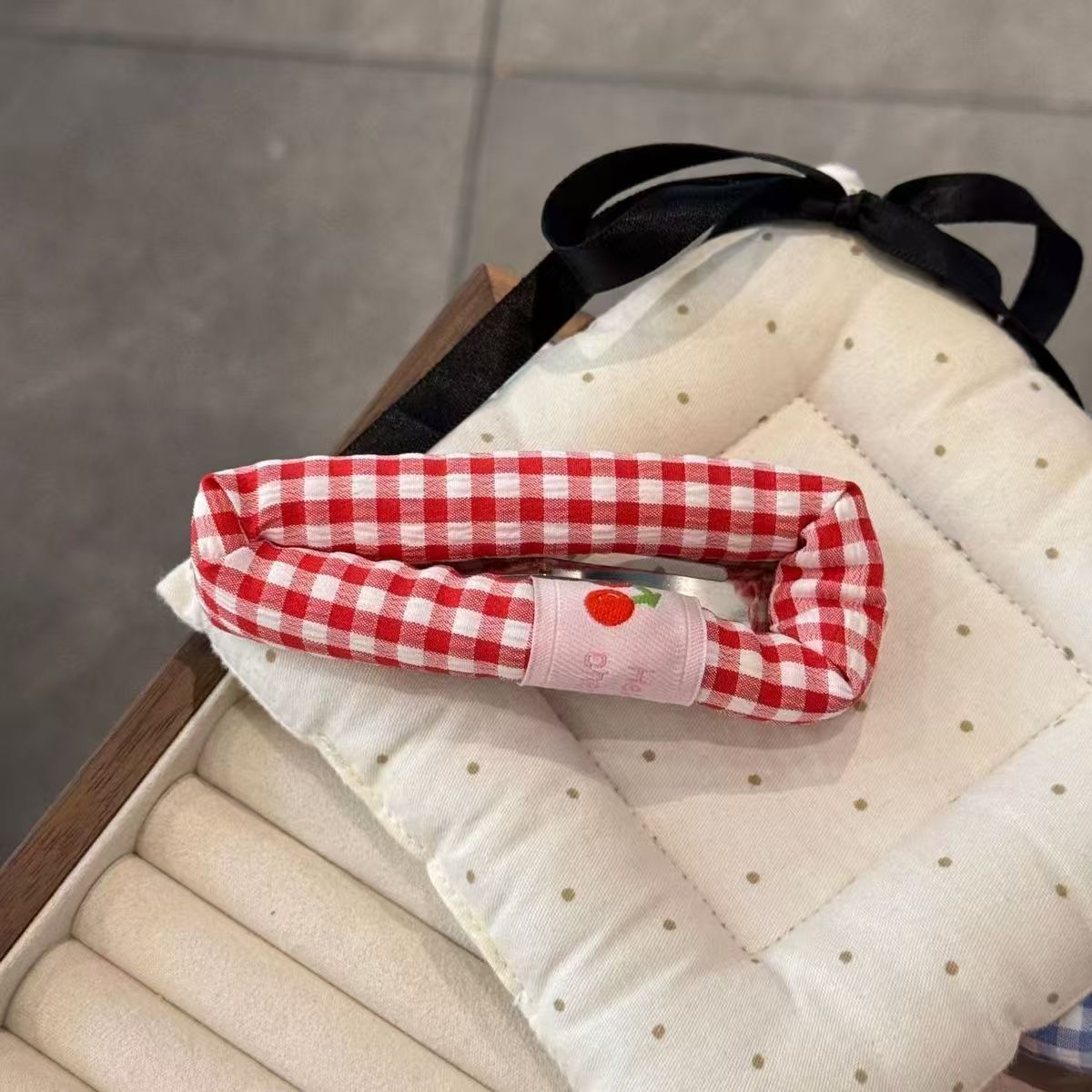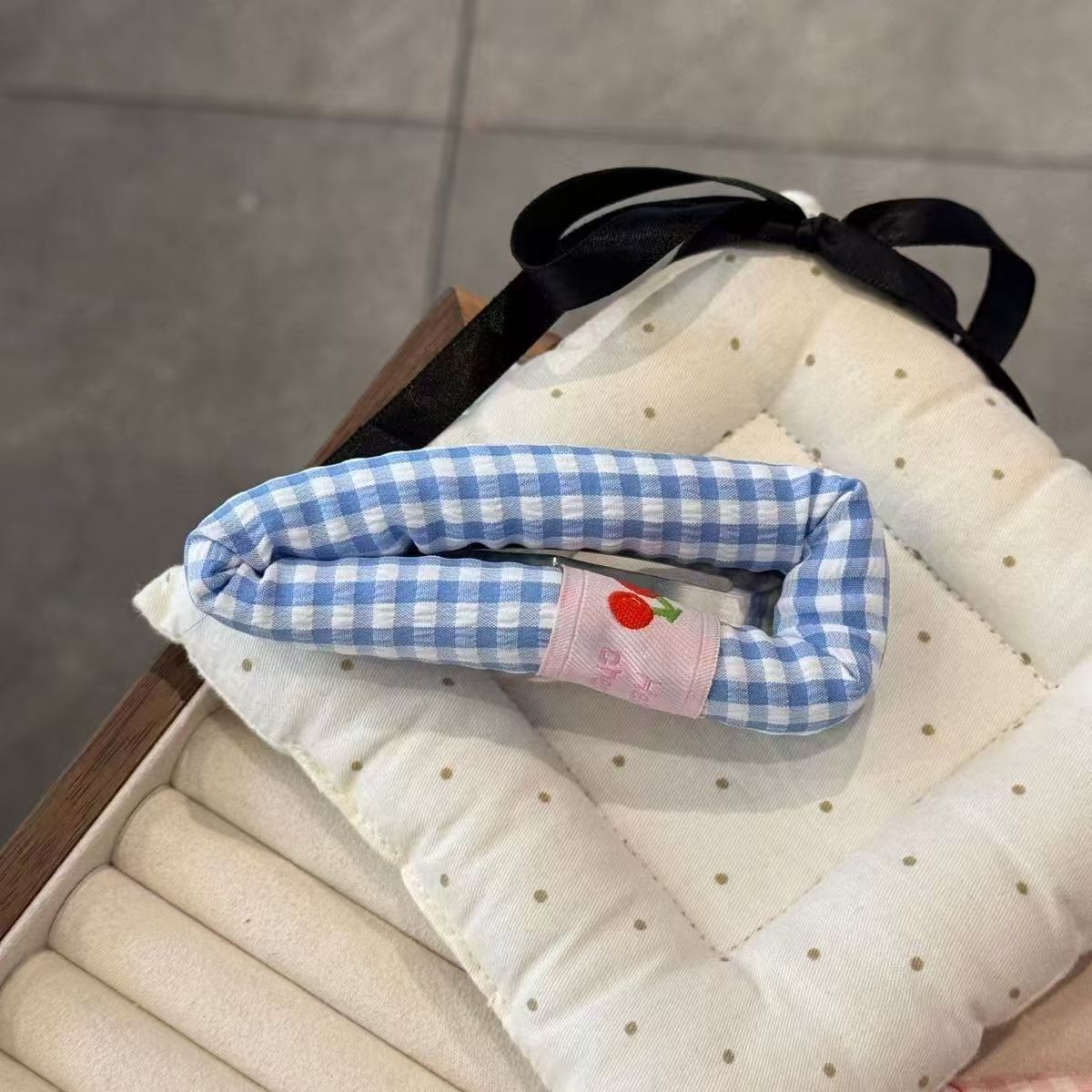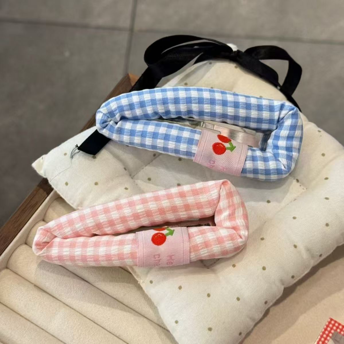 Color: blue checkered Cherry, pink check Cherry, red checked pattern Cherry