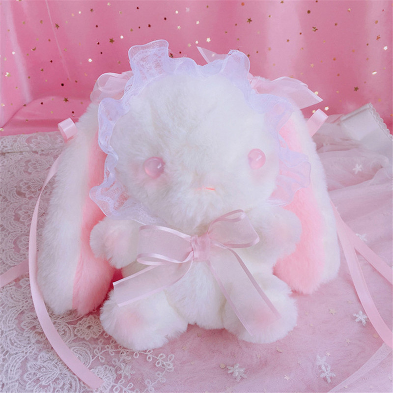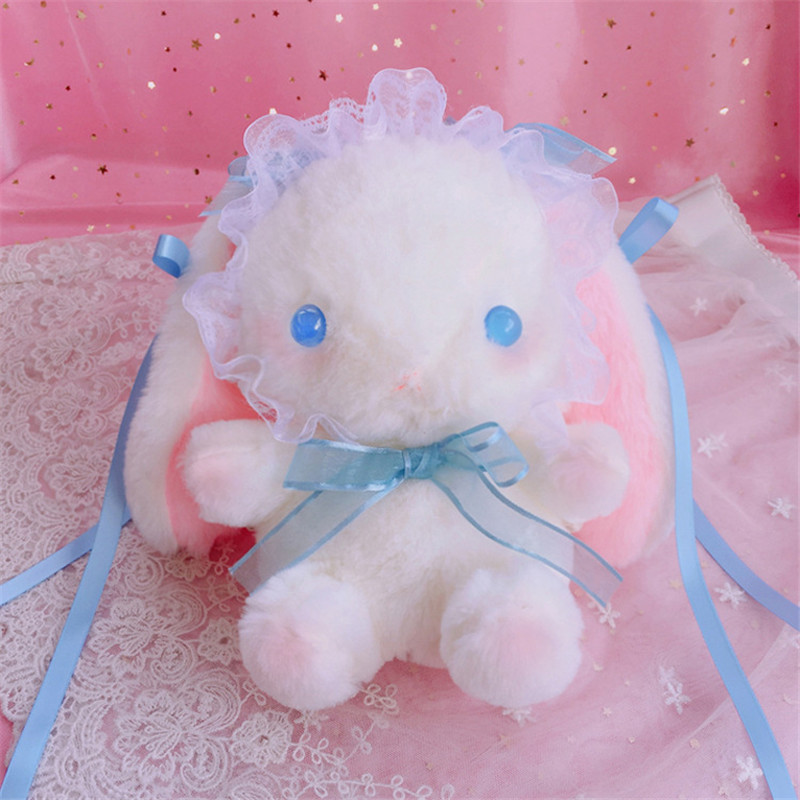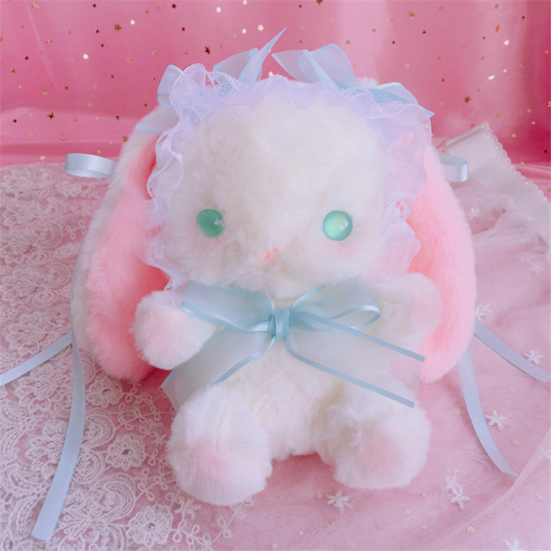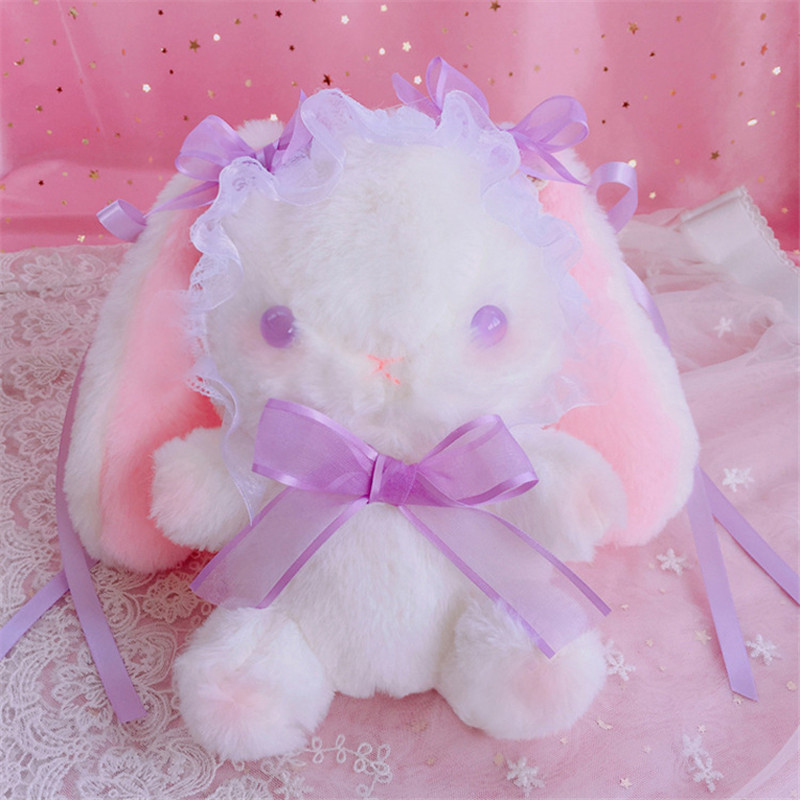 Color Pink yarn bow lop rabbit, sky blue bow lop rabbit, light purple bow lop rabbit, mint green bow lop rabbit