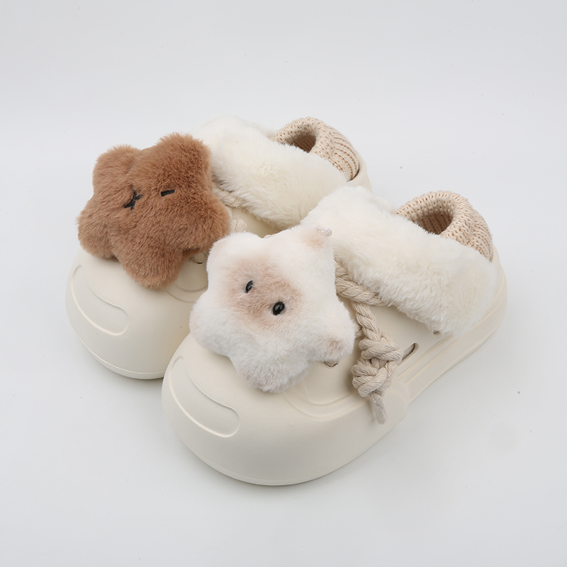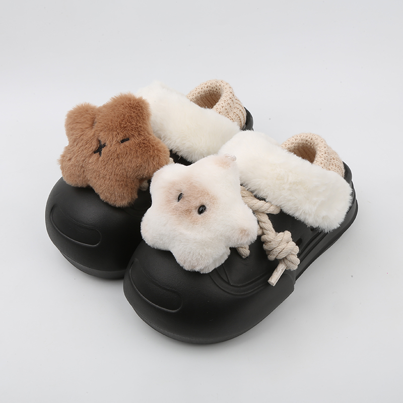 Cute Plush Detachable Fleece-lined Insulated Outdoor Slip-ons With A Thick Sole