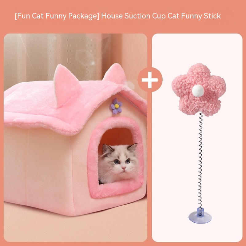 Color: [fairy house nest] easy to collapse without bracket, [stable skeleton package] House support skeleton, [fun and funny cat package] House sucker cat teaser, [Play stable skeleton package] House sucker cat teaser support skeleton, [basic full package] House sucker cat teaser Bejirog floor mat, [luxury full package] house cat teaser floor mat support skeleton