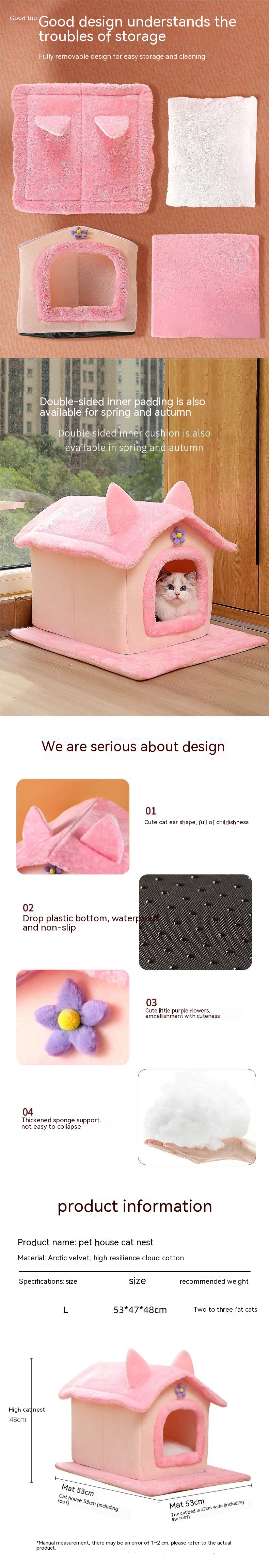 Cute Princess Cat Nest Thickened Puppet Winter Cat Pet Princess Bed