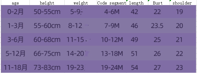 Suitable height :6M (50-55cm),9M (55-60cm),12M (60-68cm),18M (66-75c)